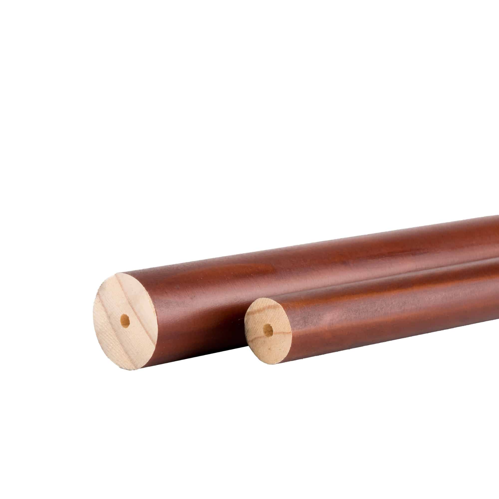 Barra De Madera Color Chocolate De 35 Mm X 1.50 Mt + Pack 10 Anillas De Madera Color Chocolate 35 Mm + Pack 2 Unidades Terminal Bola De Madera Chocolate 35 Mm