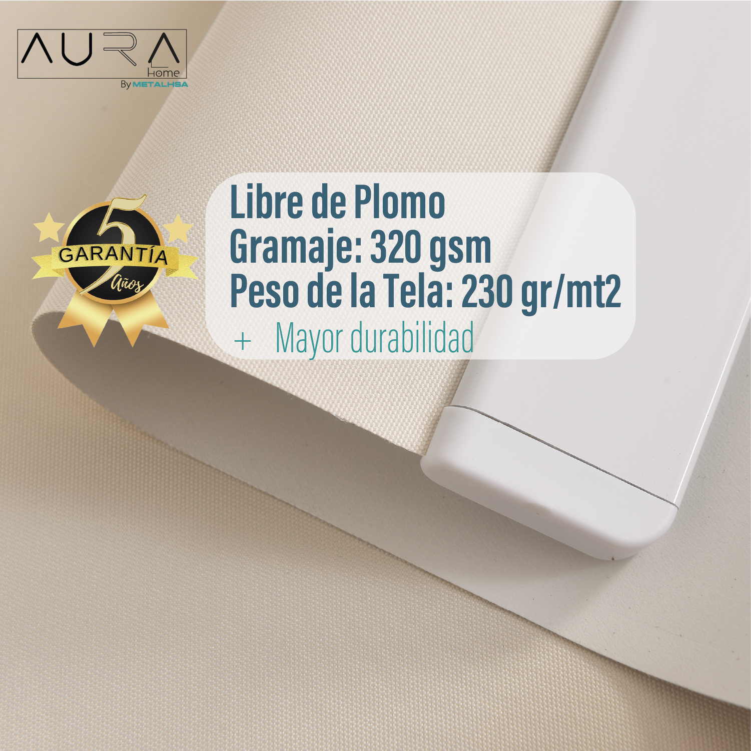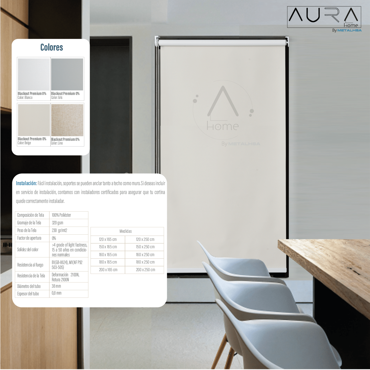 Sé el primero en valorar “Cortina Roller 100% Blackout Beige 180X250 Cm Aura”