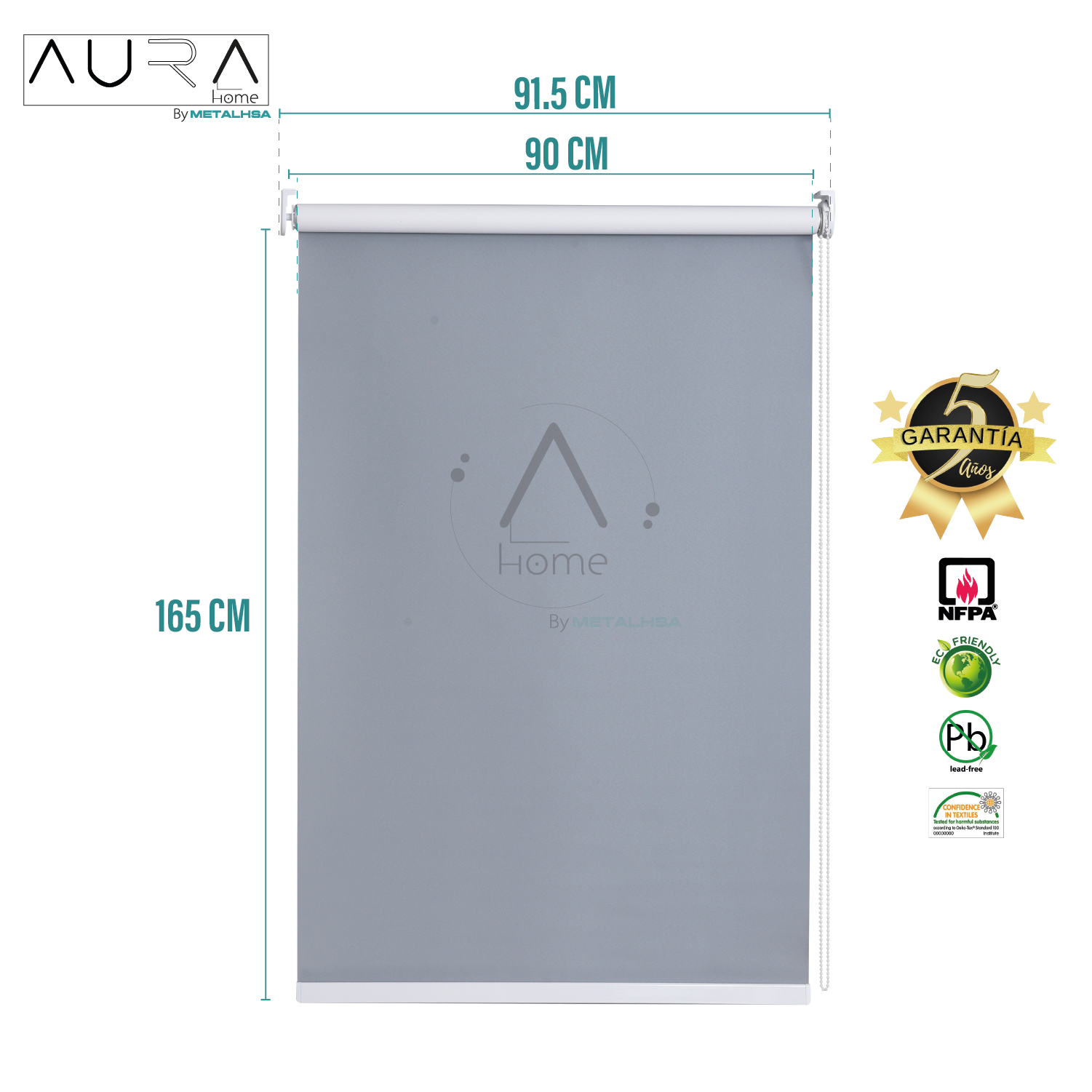 Cortina Roller 100% Blackout Gris 090X165 Cm Aura