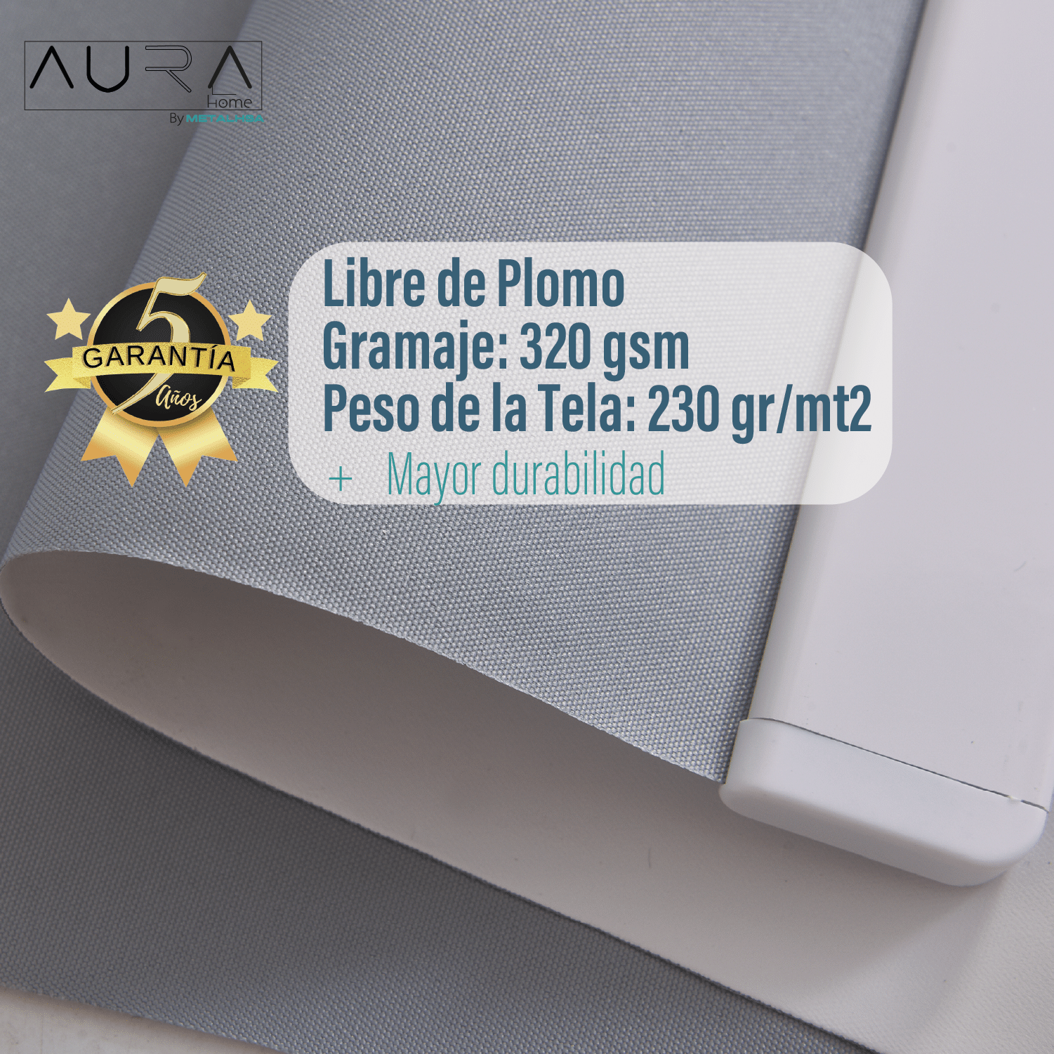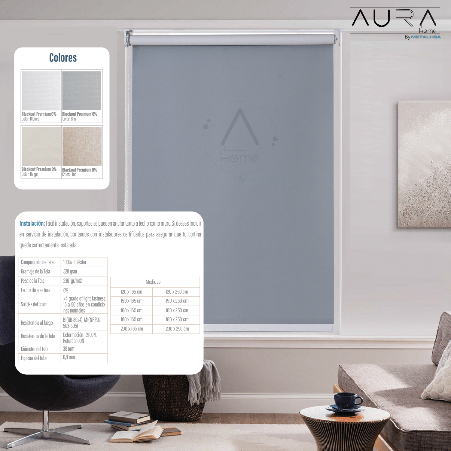Sé el primero en valorar “Cortina Roller 100% Blackout Gris 180X165 Cm Aura”