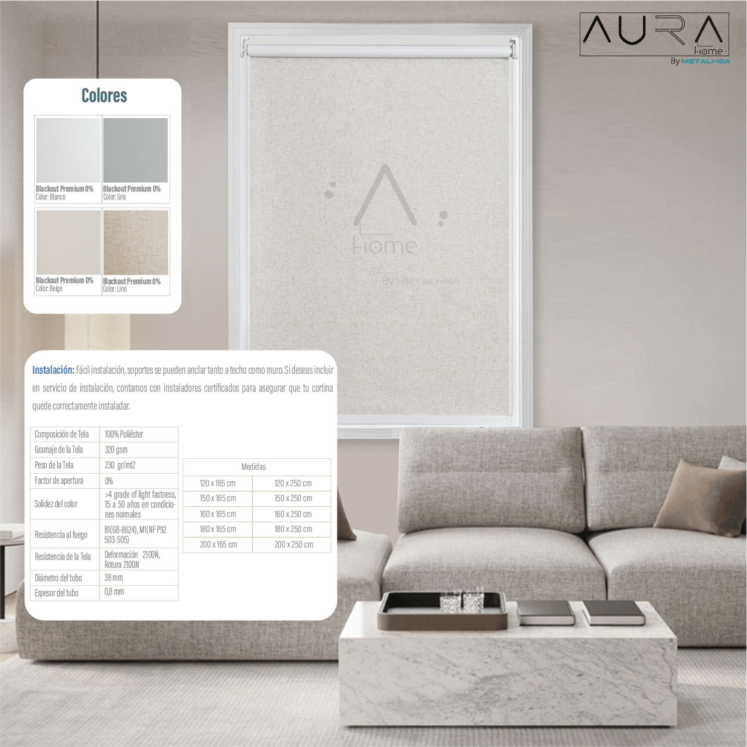 Sé el primero en valorar “Cortina Roller 100% Blackout Textura Lino 090X165 Cm Aura”