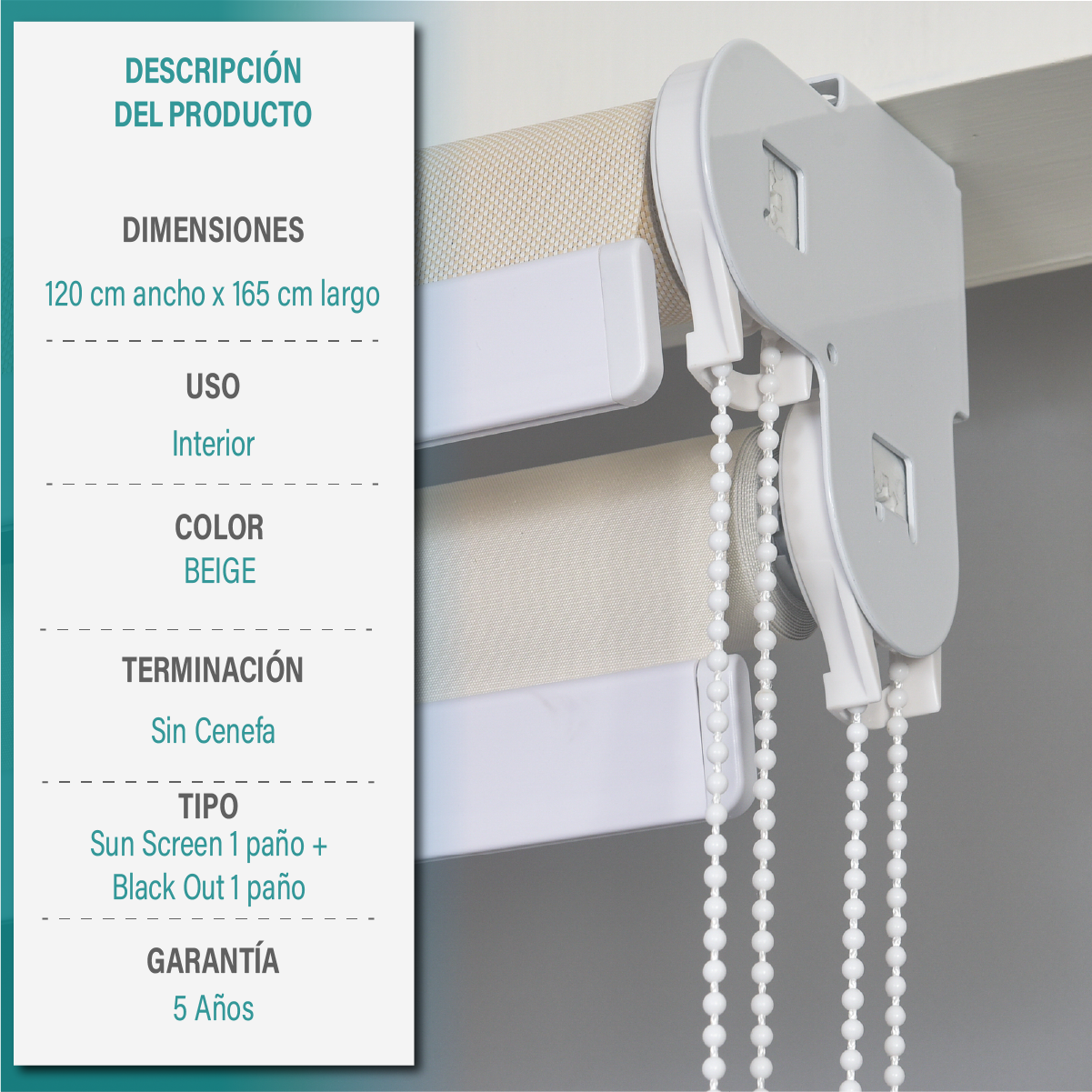 El Roller Doble Blackout + Sunscreen es la opción perfecta para quienes buscan versatilidad, confort, control de luz, privacidad y diseño moderno en un solo producto, optimizando la iluminación natural y creando ambientes más agradables en tu hogar.