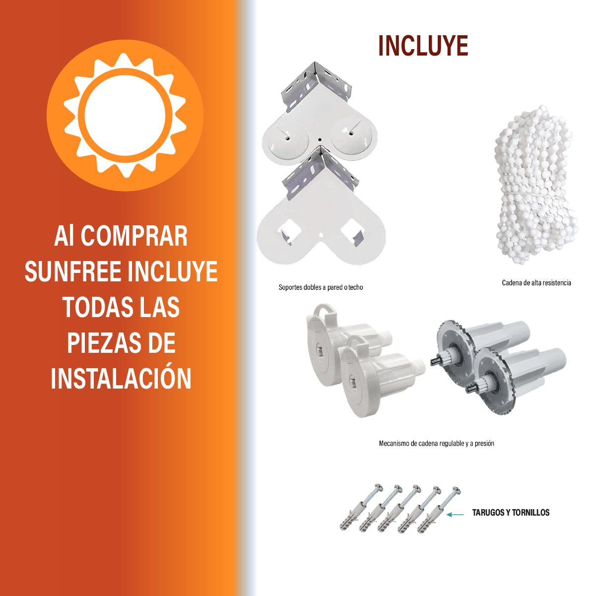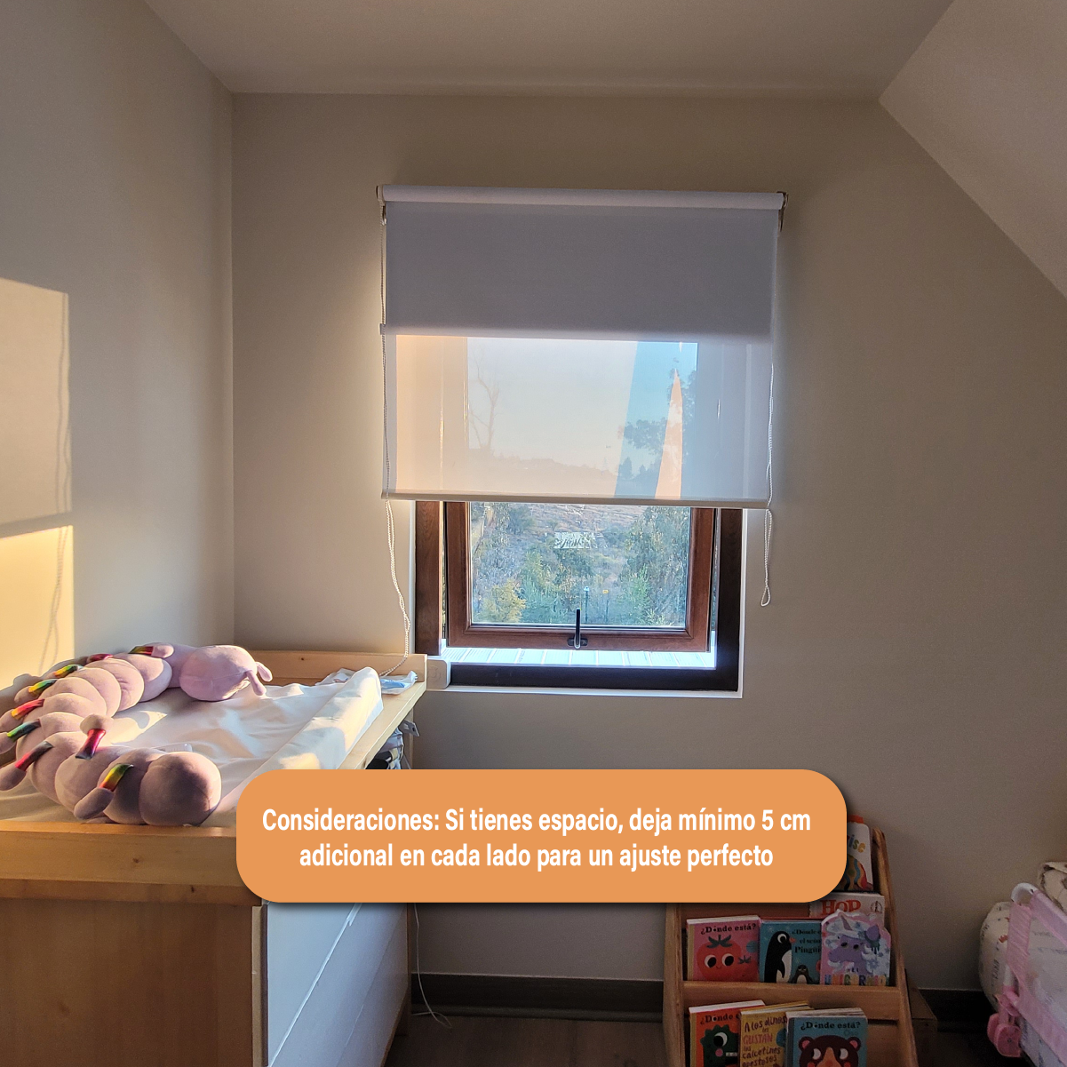 Gracias a su sistema doble de cortinas roller, puedes alternar fácilmente entre distintos niveles de iluminación según tus necesidades. La tela Sunscreen filtra la luz solar, reduce el deslumbramiento, protege contra los rayos UV y permite mantener la vista hacia el exterior sin perder luminosidad, siendo ideal para living, comedor u oficinas. Por otro lado, la tela Blackout ofrece un bloqueo total de luz, ayudando a crear ambientes más oscuros, mejorar el descanso y aumentar la privacidad, lo que la convierte en una excelente opción para dormitorios, salas de estar o habitaciones infantiles. Esta combinación permite regular la luz natural, mejorar la eficiencia térmica, reducir el calor y optimizar el confort interior del hogar.