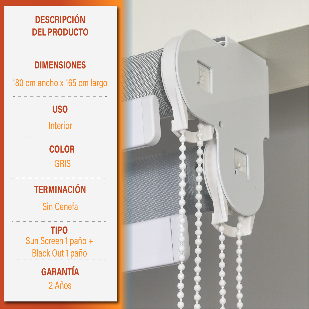 Cortina Roller Doble Blackout y Sunscreen 180 X 165 Cm Color Gris Marca Sunfree
