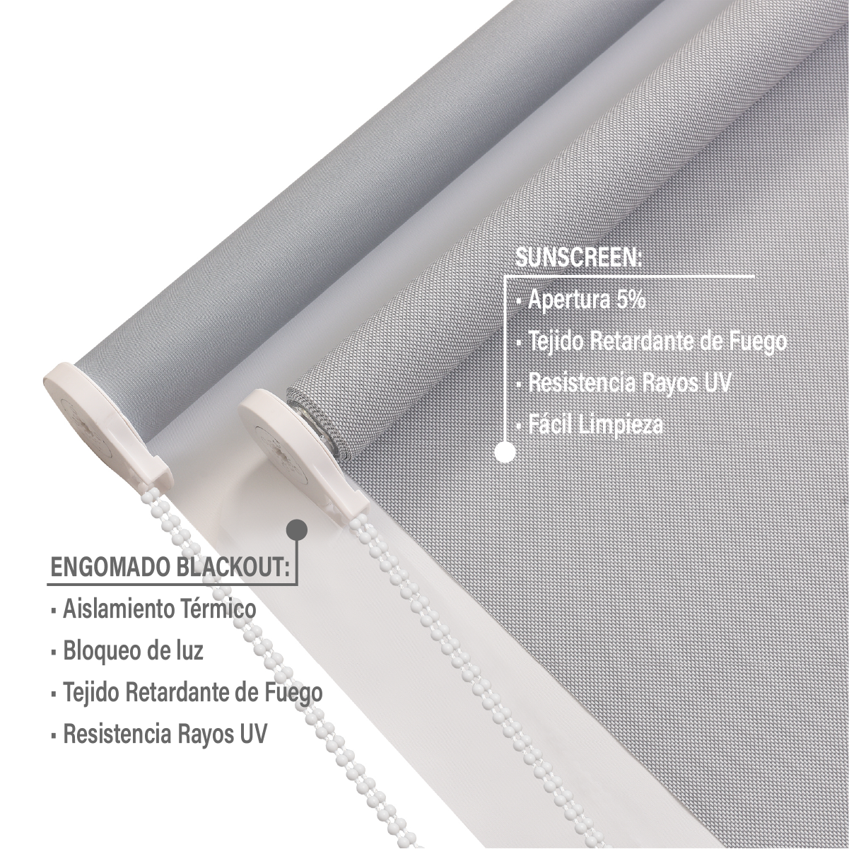 El Roller Doble Blackout + Sunscreen es la opción perfecta para quienes buscan versatilidad, confort, control de luz, privacidad y diseño moderno en un solo producto, optimizando la iluminación natural y creando ambientes más agradables en tu hogar.