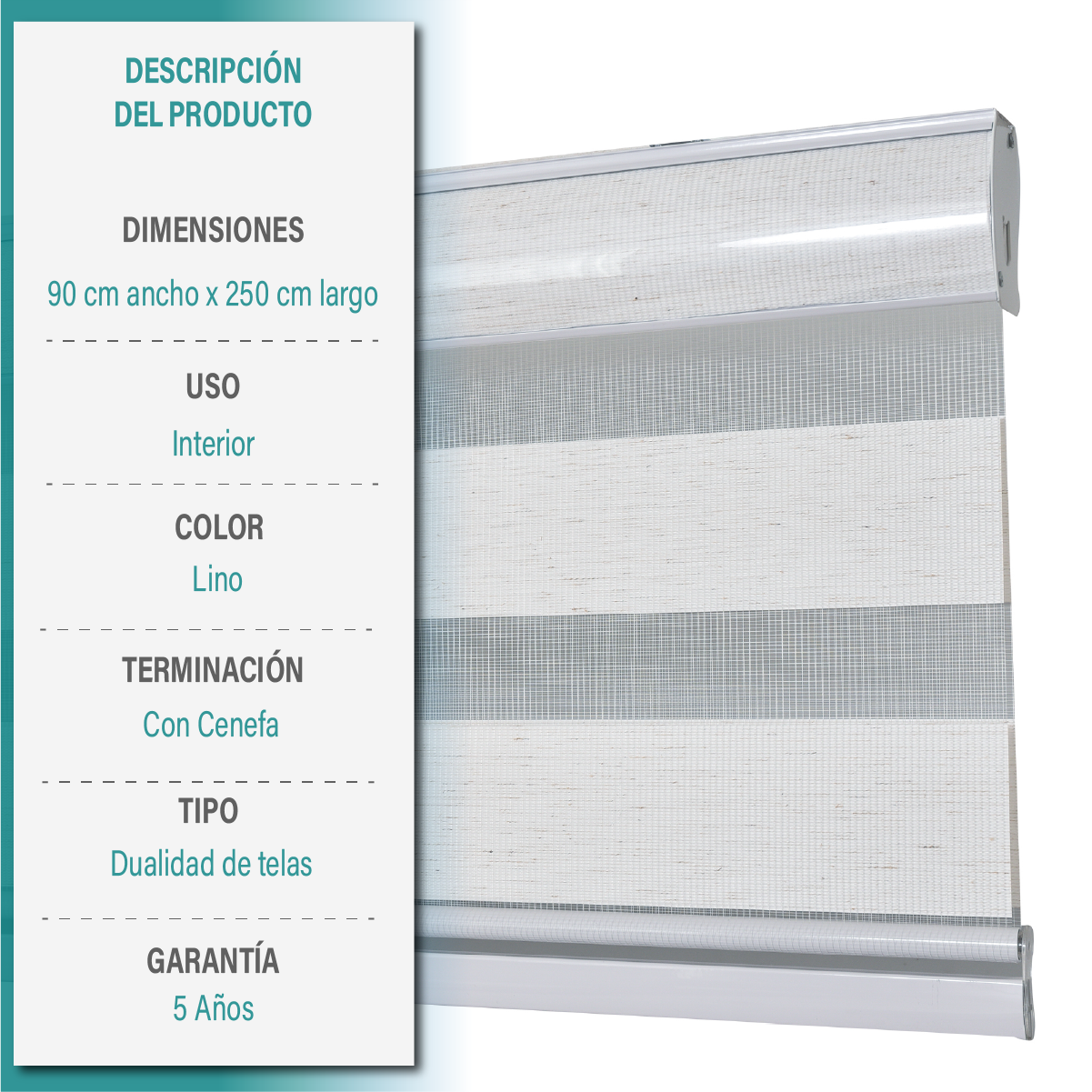 Cortina Roller Duo Zebra Día Y Noche 090 X 250 Cm Color Textura Lino Marca Aura