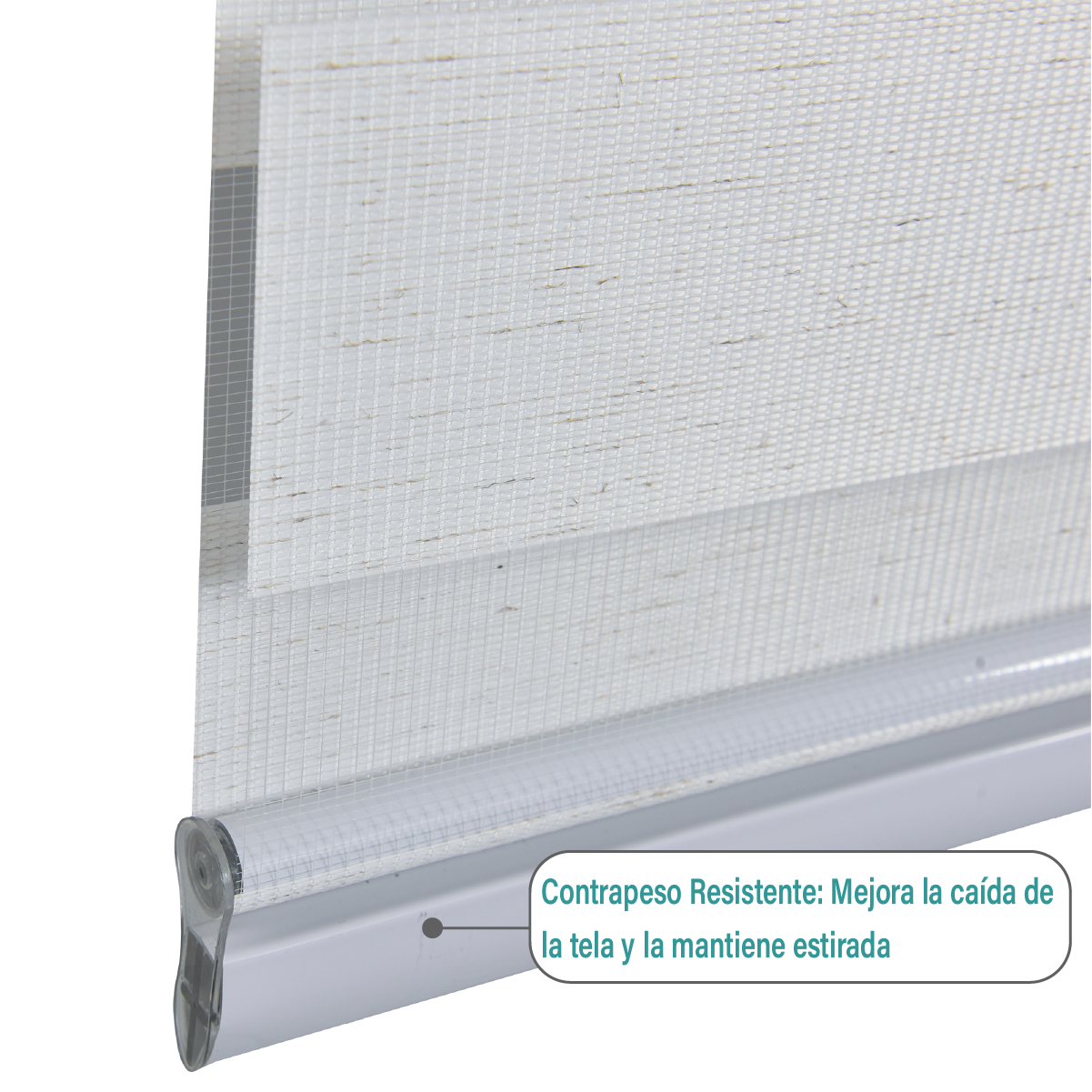 Tiene un control de luz ajustable, gracias a la combinación de tela transparente y tela opaca permite posicionar la cortina en tres niveles:
