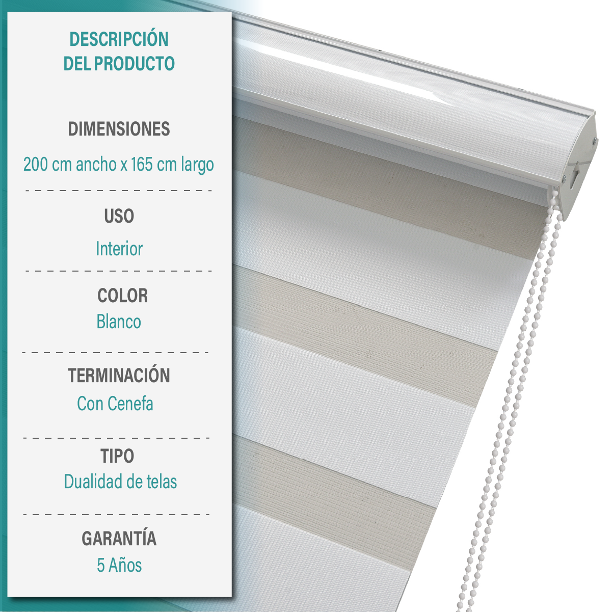 Cortina Roller Duo Zebra Día Y Noche 200 X 165 Cm Color Blanco Marca Aura