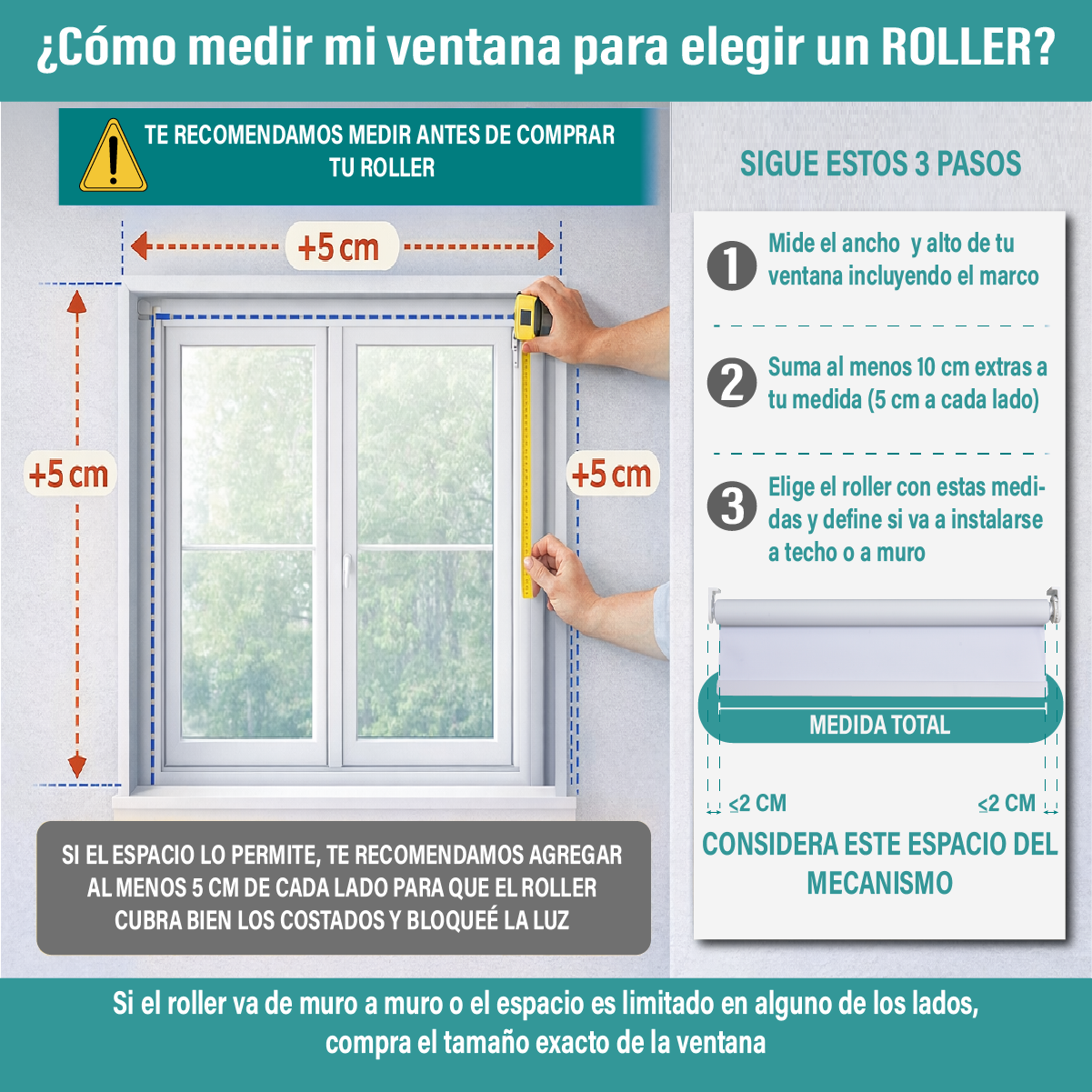 Te recomendamos medir el ancho y alto de tu ventana antes de realizar la compra, especialmente si realizarás la instalación por tu cuenta. Así te asegurarás un ajuste adecuado de tu cortina roller duo.