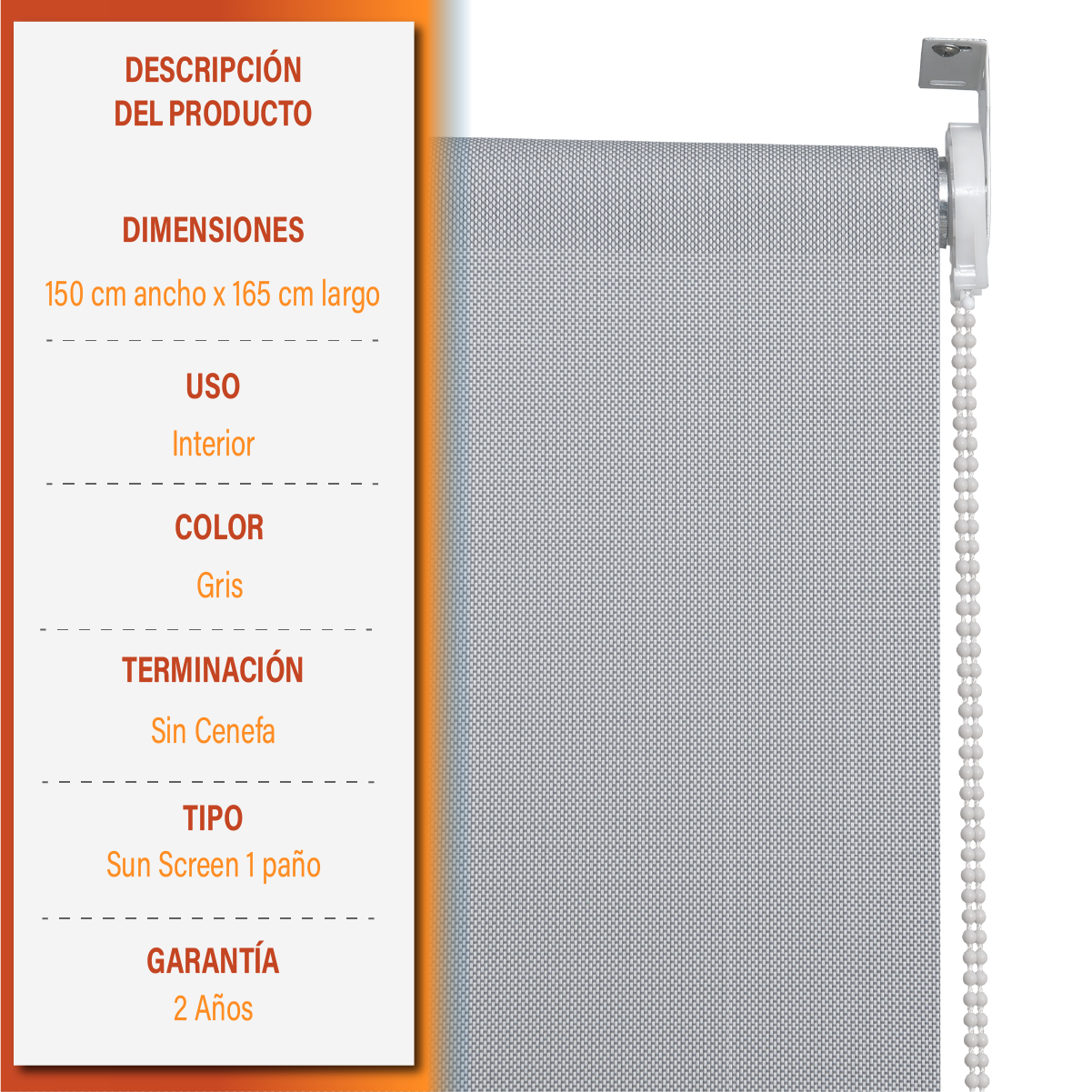 Sé el primero en valorar “Cortina Roller Sunscreen 150 X 165 Cm Color Gris Marca Sunfree”