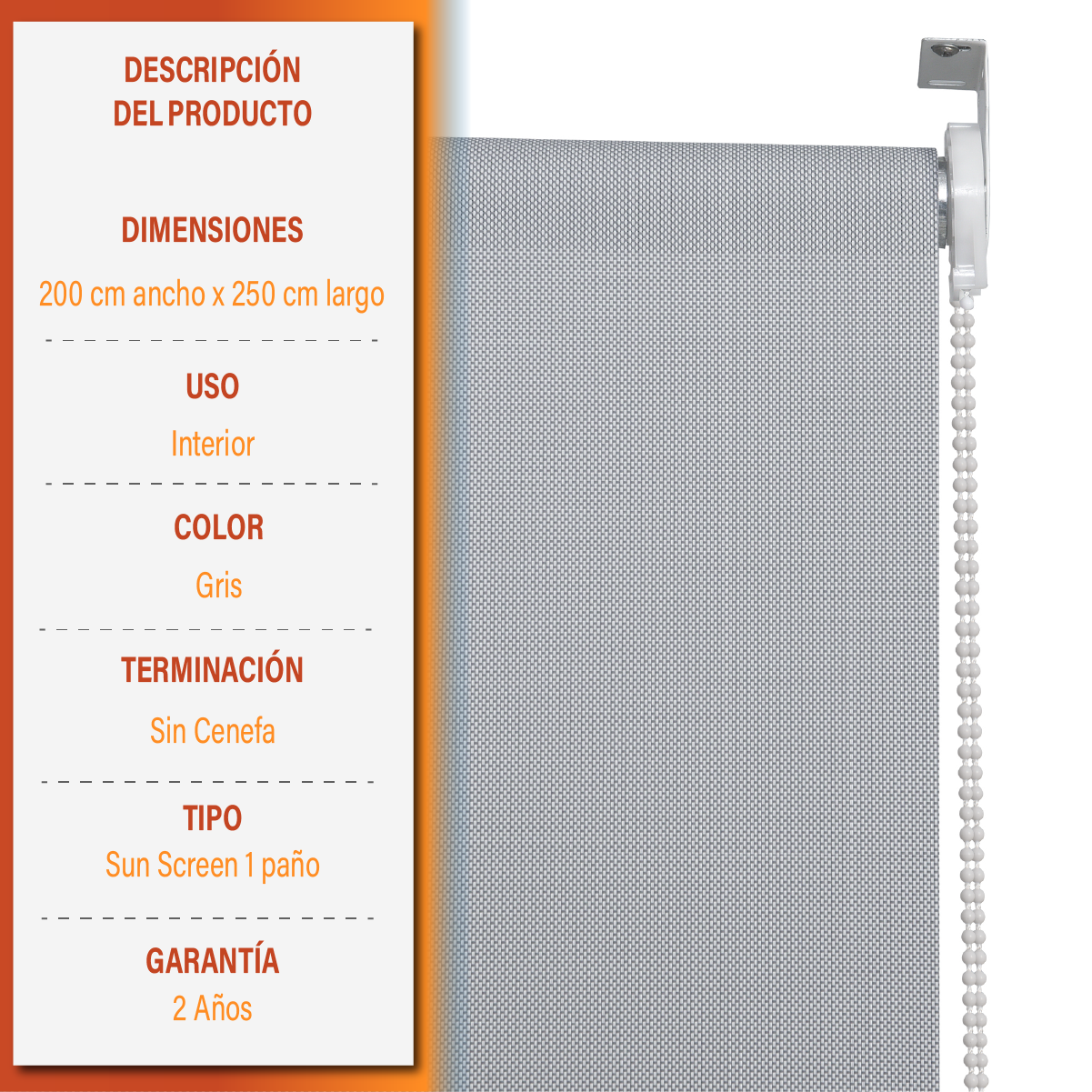 Cortina Roller Sunscreen 200 X 250 Cm Color Gris Marca Sunfree