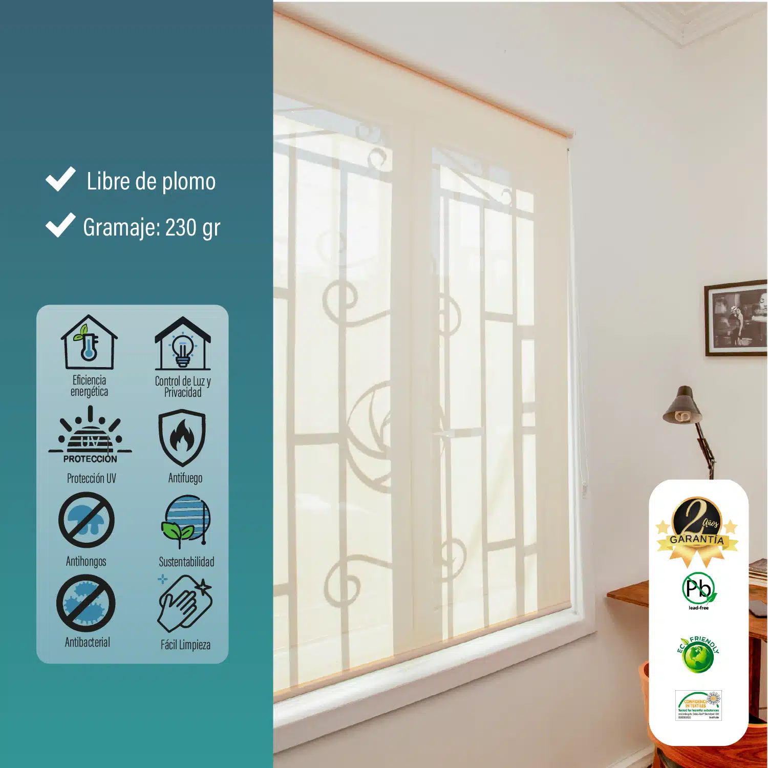 Las cortinas Sunscreen es la solución perfecta para aquellos espacios donde necesitas aprovechar al máximo la luz natural sin comprometer la privacidad o la protección contra los rayos solares. Su innovadora tela filtra a luz dejando entra el 5% de está de manera eficiente, permitiéndote disfrutar de ambientes luminosos mientras bloquea la vista desde el exterior durante el día y protege de los dañinos rayos UV.