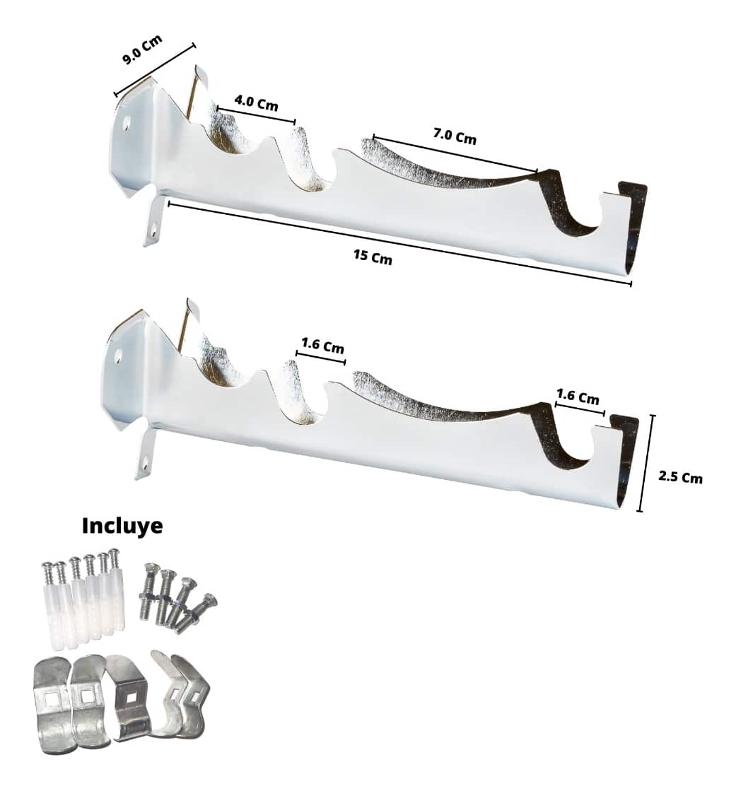 Pack 2 Unidades De Soporte Cromado Doble A Muro 16 Mm