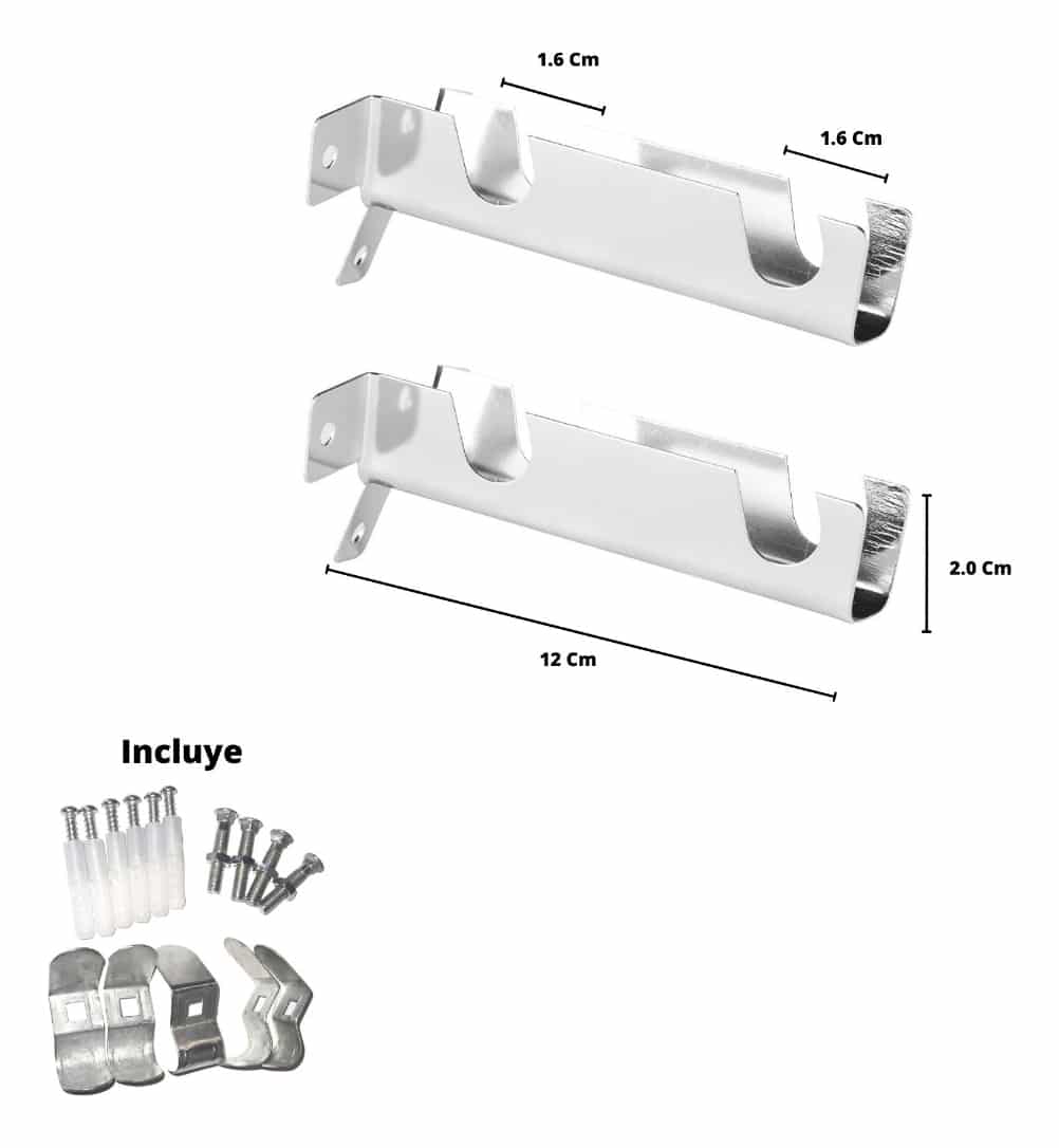 Pack 2 Unidades De Soporte Cromado Doble Corto A Muro 16 Mm