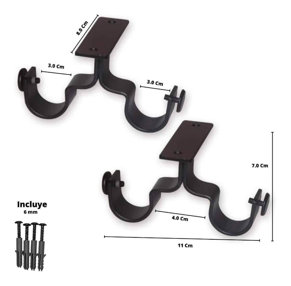 Pack 2 Unidades Soporte Doble Techo De Metal Negro 28/28 Mm