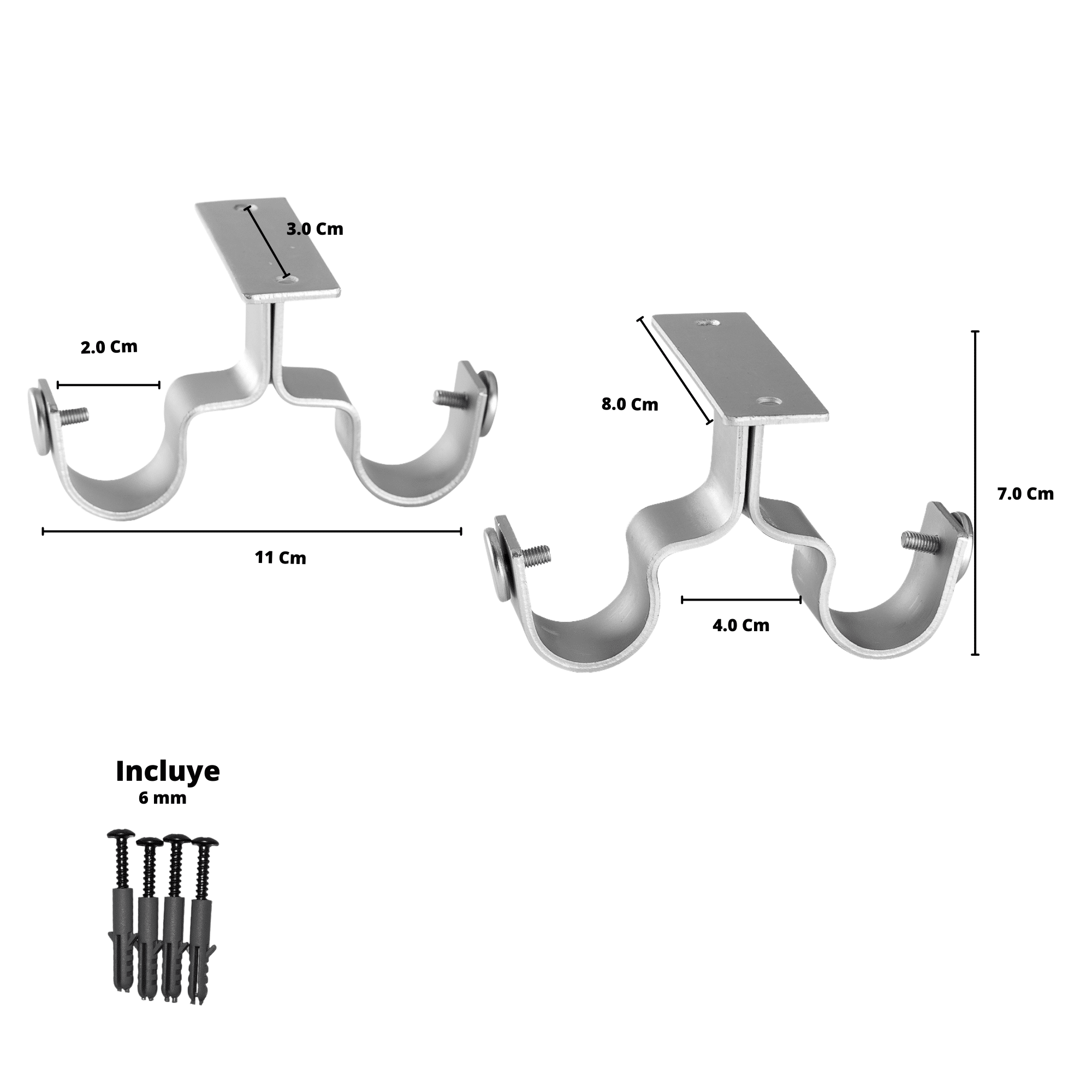 Pack 2 Unidades Soporte Doble Techo De Metal Satín 19/19 Mm