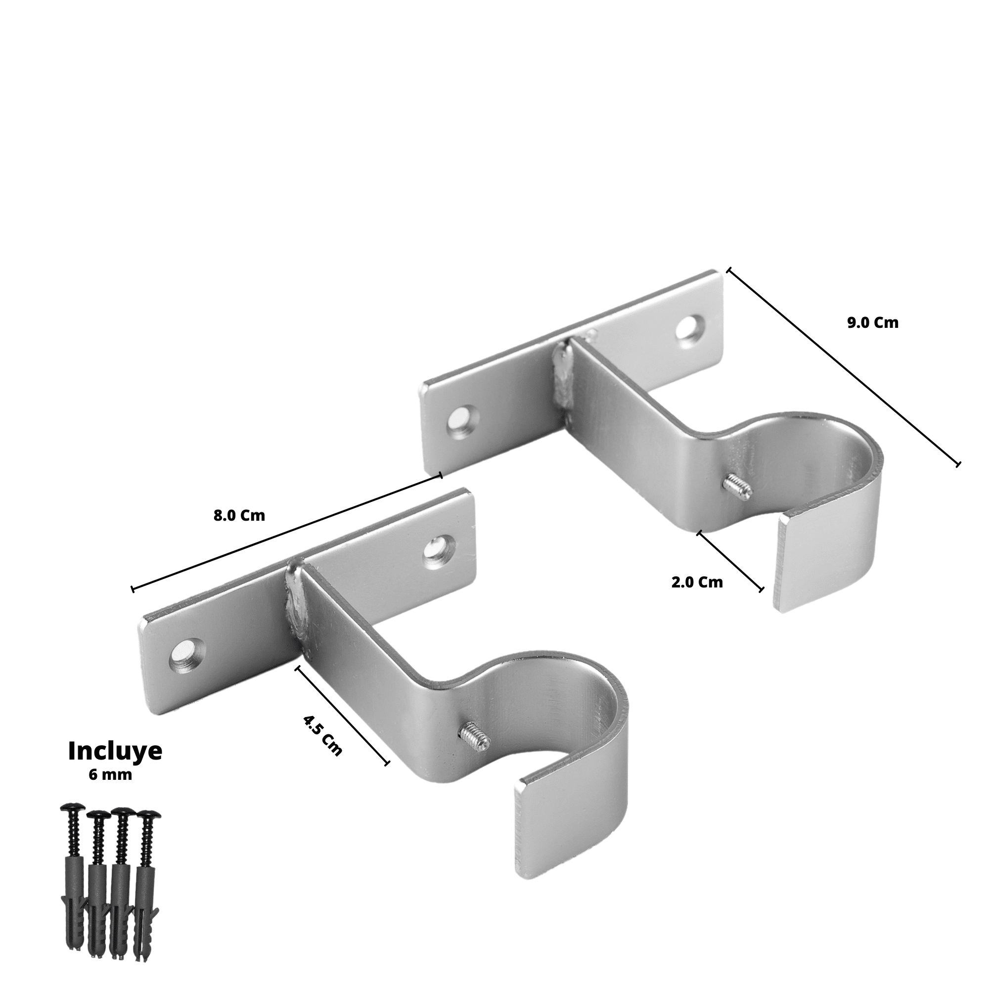 Pack 2 Unidades Soporte Simple Muro De Metal Satín 19 Mm