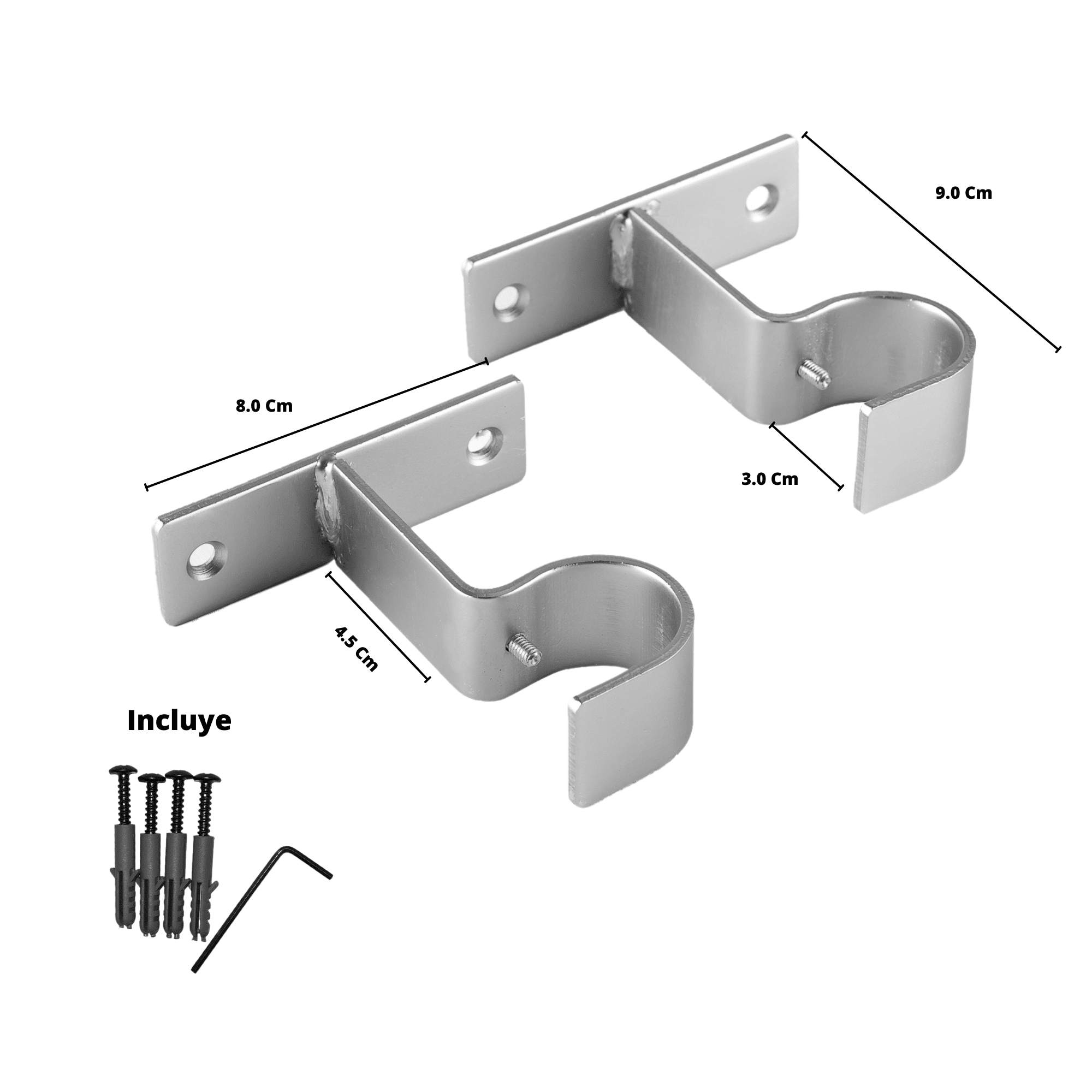 Pack 2 Unidades Soporte Simple Muro De Metal Satín 28 Mm