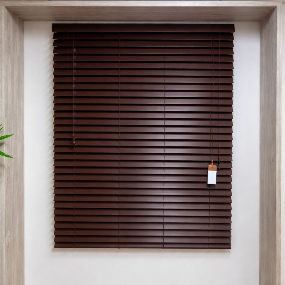 La persiana PVC imitación madera color caoba combina la estética cálida de la madera con la resistencia y durabilidad del PVC, convirtiéndose en una solución práctica y elegante para distintos espacios del hogar u oficina. Su acabado texturado reproduce de forma realista las vetas naturales de la madera, aportando un toque sofisticado y moderno a cualquier ambiente.