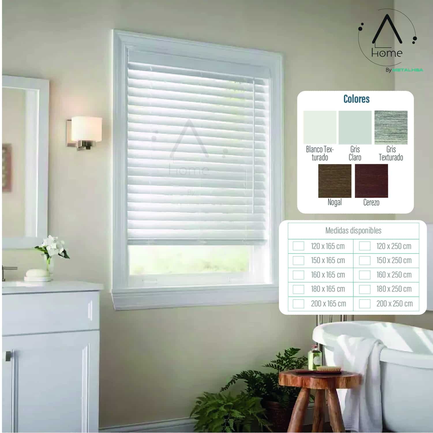 Las persianas en color blanco texturado de Aura Home combinan elegancia y funcionalidad en un diseño clásico que ilumina y amplía visualmente cualquier espacio.
