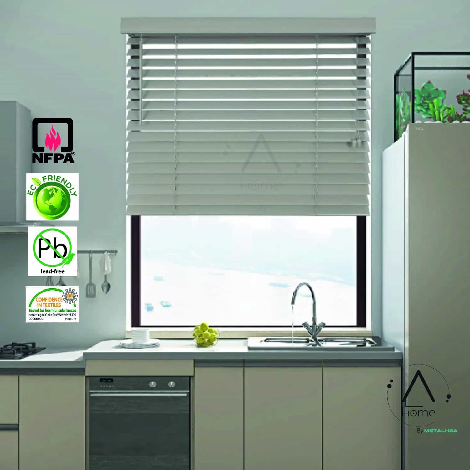 Las persianas de PVC en color gris claro de Aura Home aportan serenidad y sofisticación a tus habitaciones.
