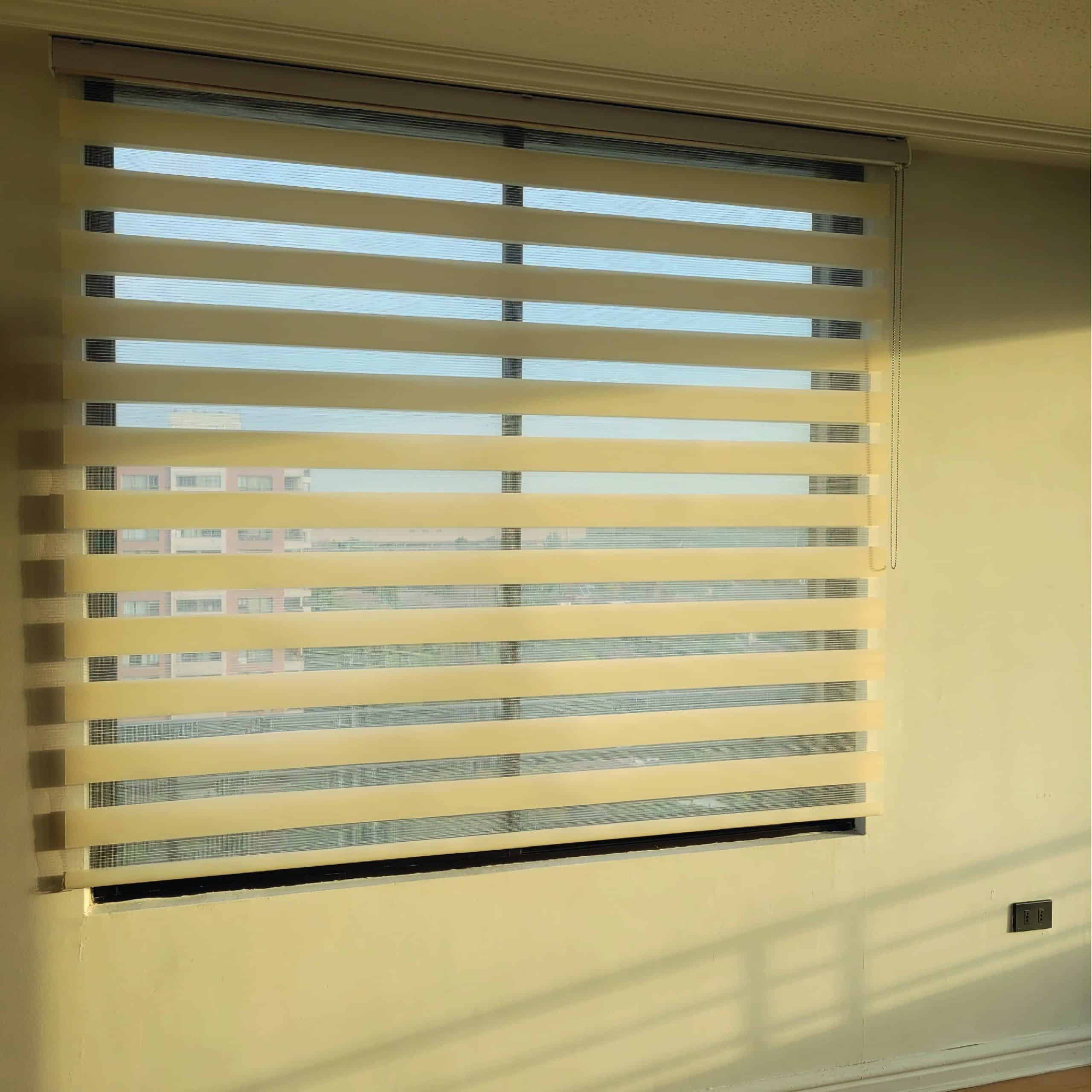 La Cortina Roller Duo Zebra Día y Noche es un producto de alta calidad y diseño moderno. Esta cortina combina dos capas de tela, una con franjas transparentes y otra con franjas opacas, lo que permite regular la entrada de luz y la privacidad de manera fácil y precisa.