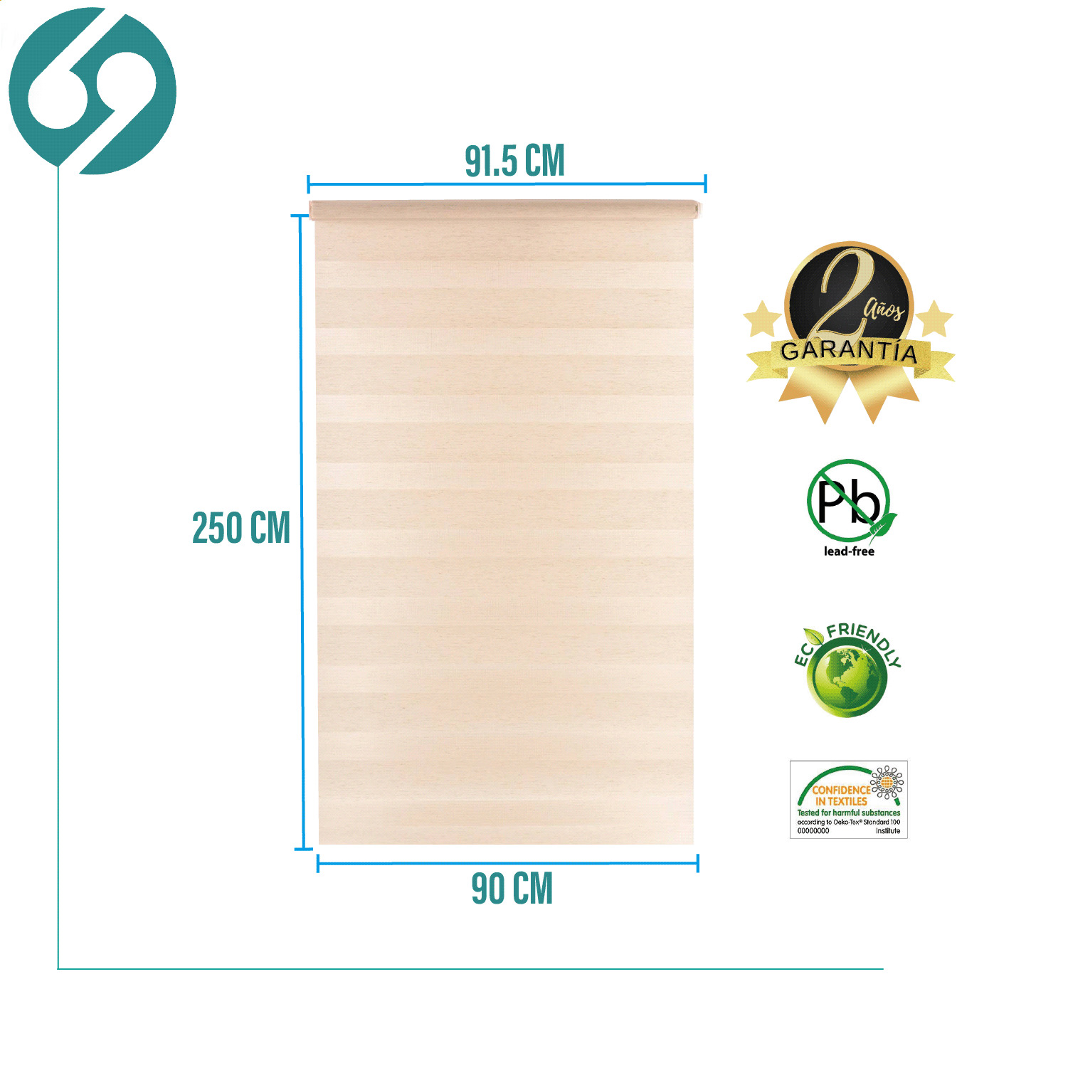 La Cortina Roller Duo Zebra Día y Noche es un producto de alta calidad y diseño moderno. Esta cortina combina dos capas de tela, una con franjas transparentes y otra con franjas opacas, lo que permite regular la entrada de luz y la privacidad de manera fácil y precisa.