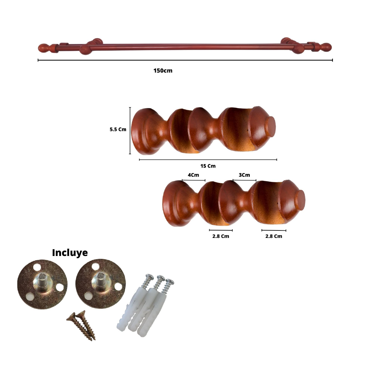● 2 Soportes dobles de madera con 19/28 milímetros de diámetro.