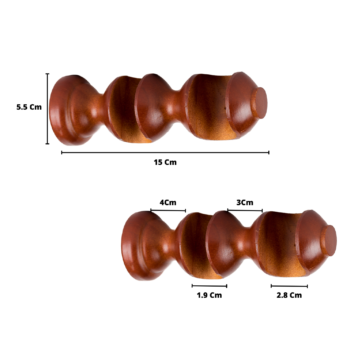 ● 2 Terminales Bola de madera con 28 milímetros de diámetro.