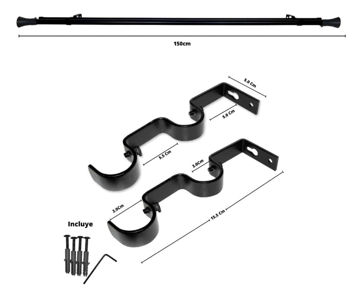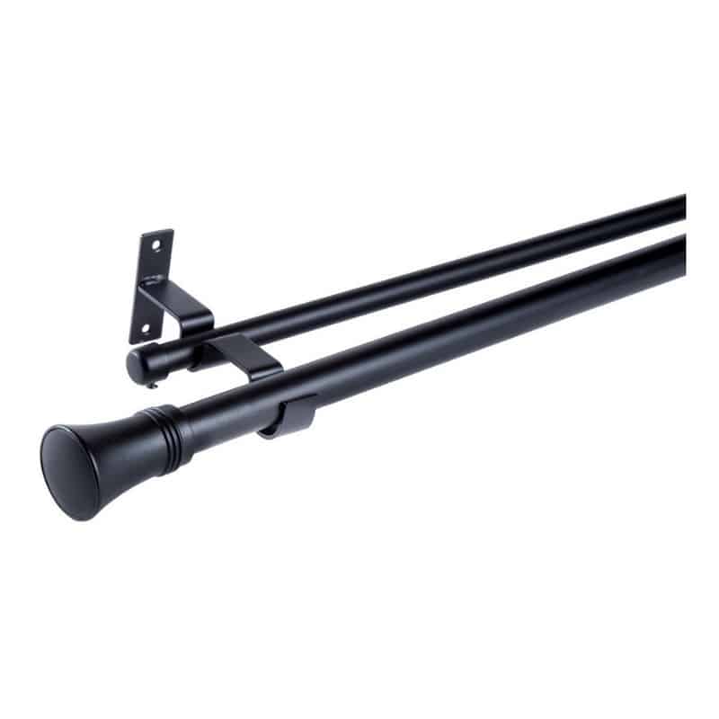 Set Barras para Cortina Doble 19/28 Mm Metal Color Negro x 1.50 Mt Terminal Cónico