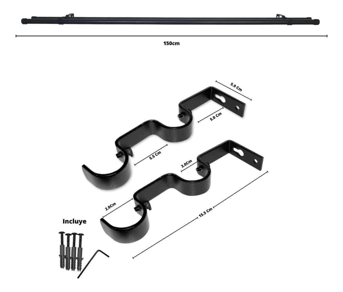 Set Barras para Cortina Doble 19/28 Mm Metal Color Negro x 1.50 Mt Terminal Tope
