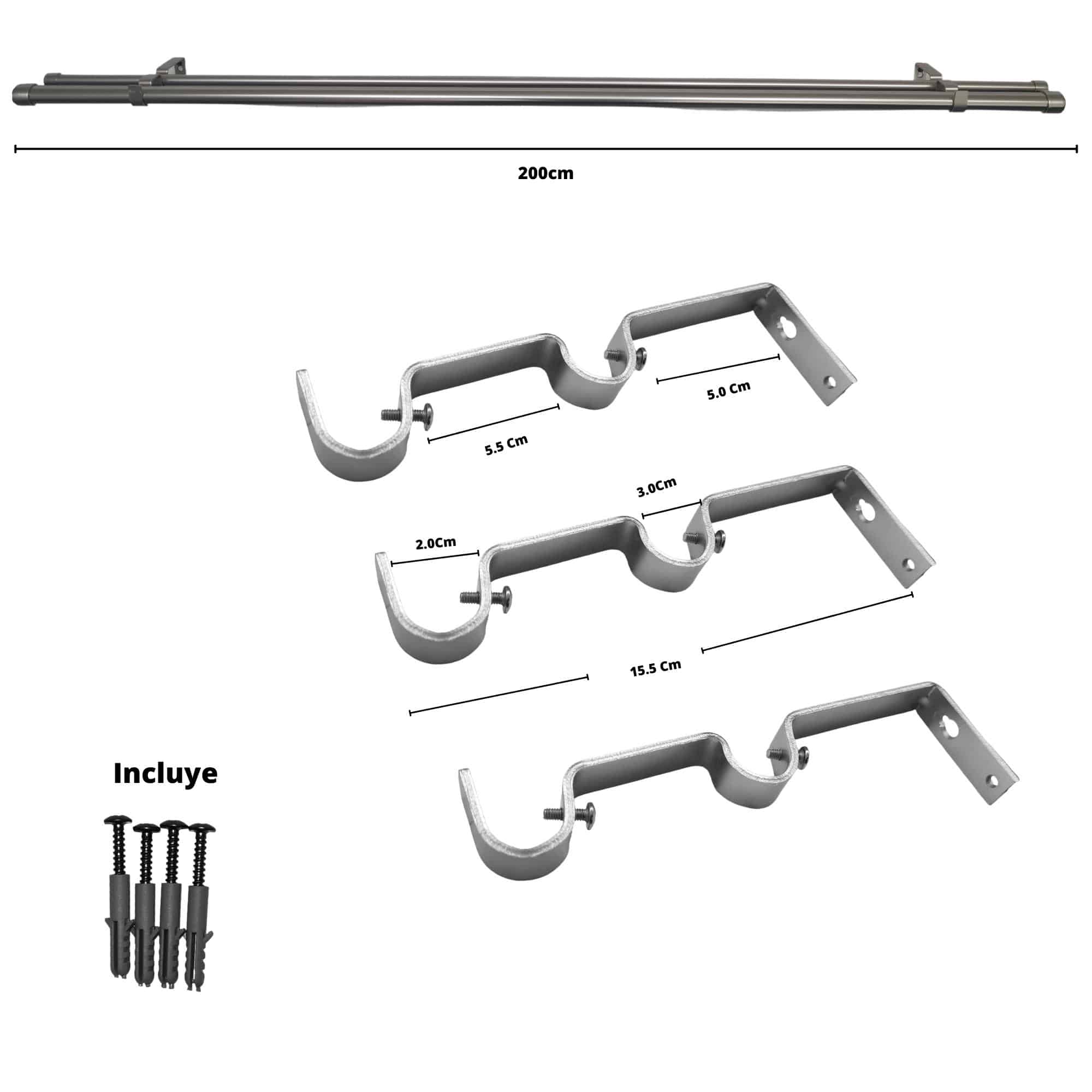Este set de Metal 19/28 mm es la opción perfecta para quienes buscan darle un toque moderno y elegante a su decoración. Firme y resistente, este set es ideal para cortinas pesadas, garantizando que tus ventanas tengan la sujeción adecuada sin preocuparte por la estabilidad.