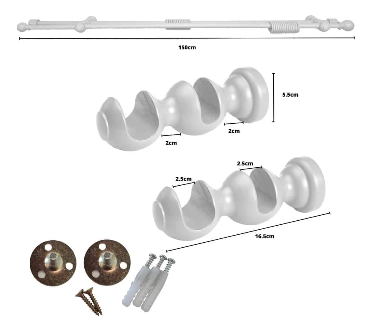Set Barras para Cortina Doble 25/25 Mm de Madera 1,50 Mt Color Blanco Terminal Bola