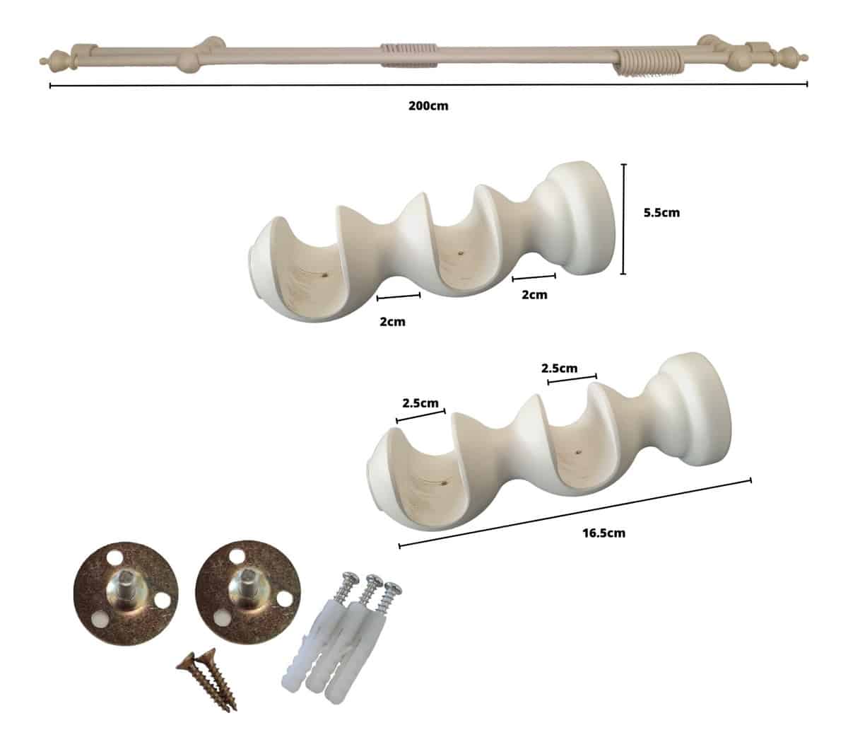Set Barras para Cortina Doble 25/25 Mm de Madera 2,00 Mt Color Marfil Terminal King