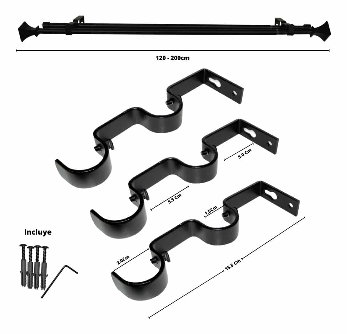 Set Barras para Cortina Doble 13/16 Mm Extensible 120-200 Cm Negro Orb Prisma