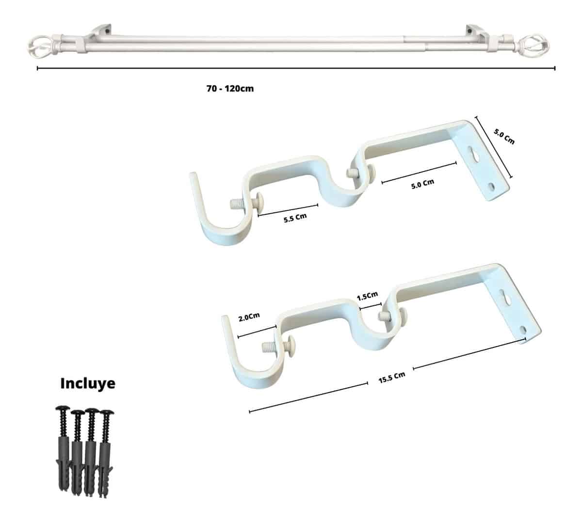 Set Barras para Cortina Doble 13/16 Mm Extensible 70-120 Cm Blanco Nido