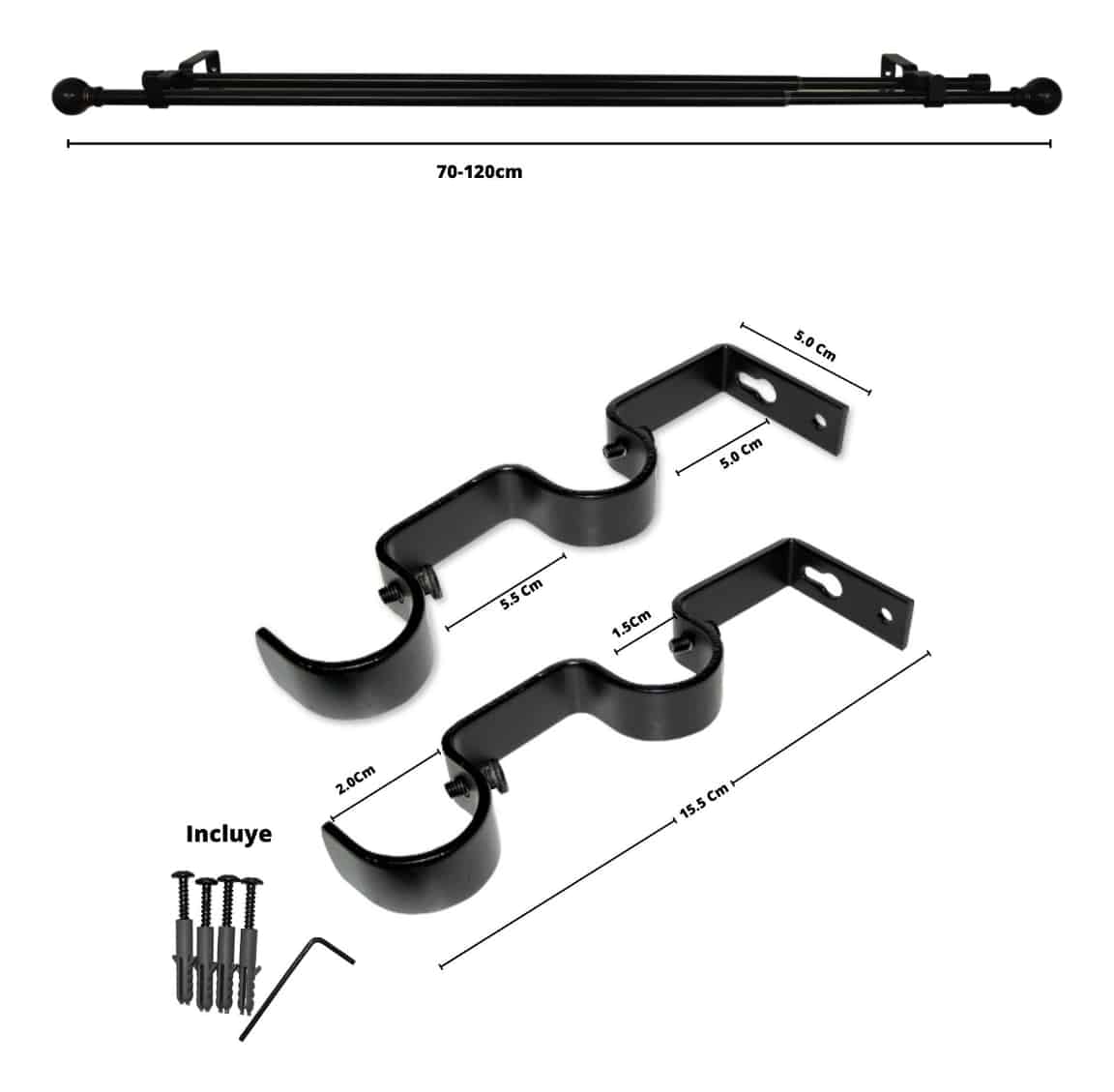 Set Barras para Cortina Doble 13/16 Mm Extensible 70-120 Cm Negro Bola