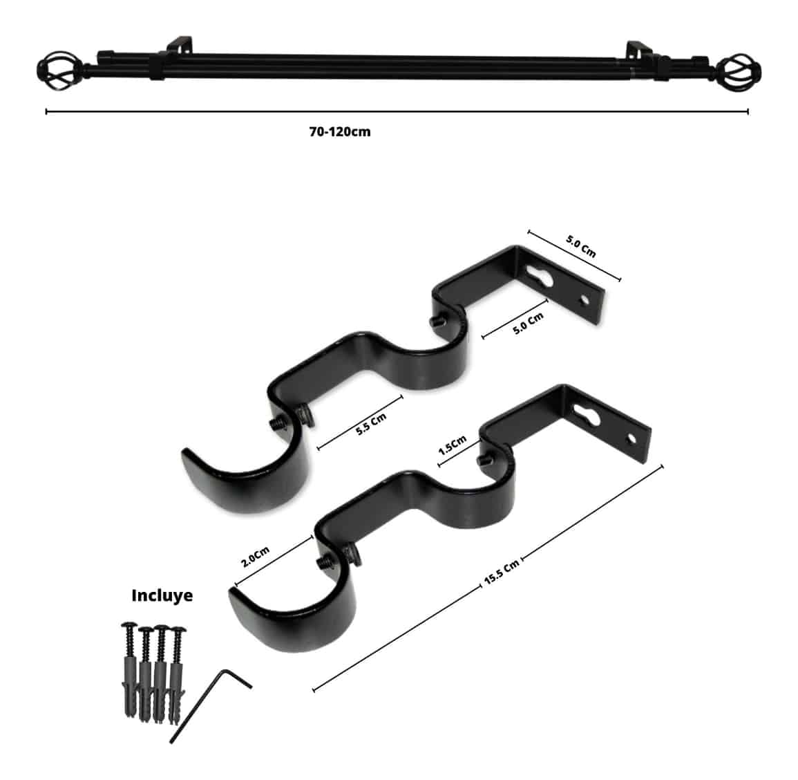 Set Barras para Cortina Doble 13/16 Mm Extensible 70-120 Cm Negro Nido