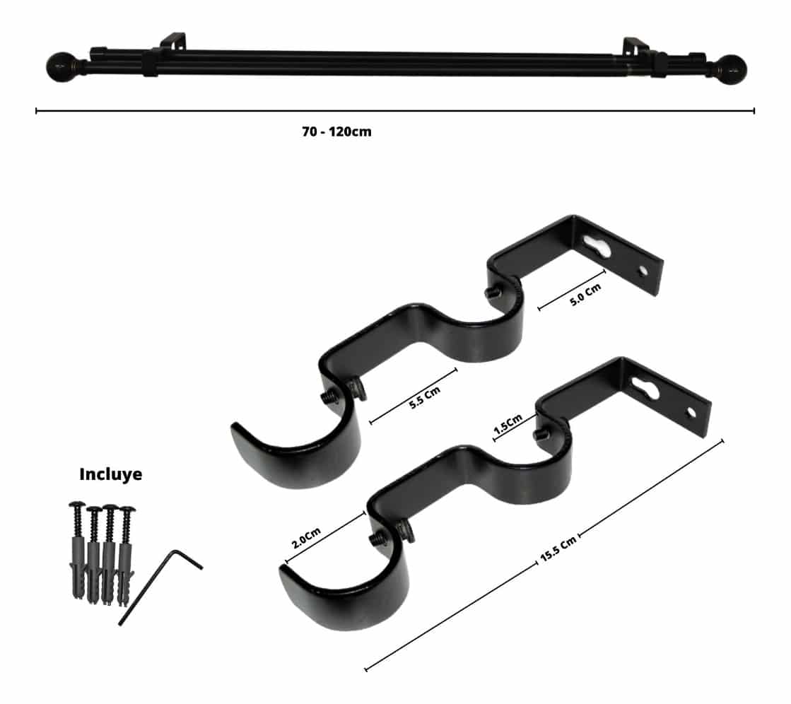 Set Barras para Cortina Doble 13/16 Mm Extensible 70-120 Cm Negro Orb Bola