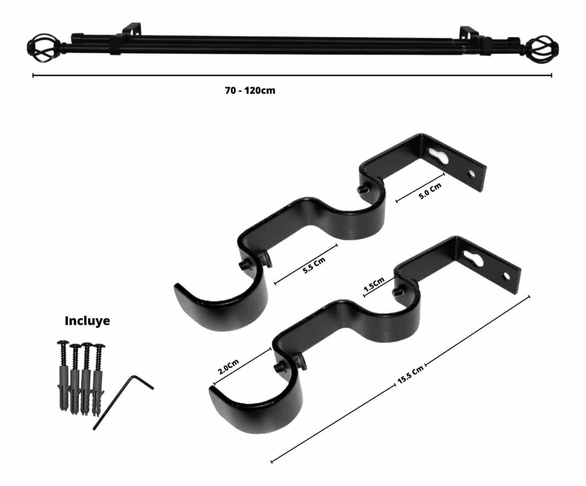 Set Barras para Cortina Doble 13/16 Mm Extensible 70-120 Cm Negro Orb Nido