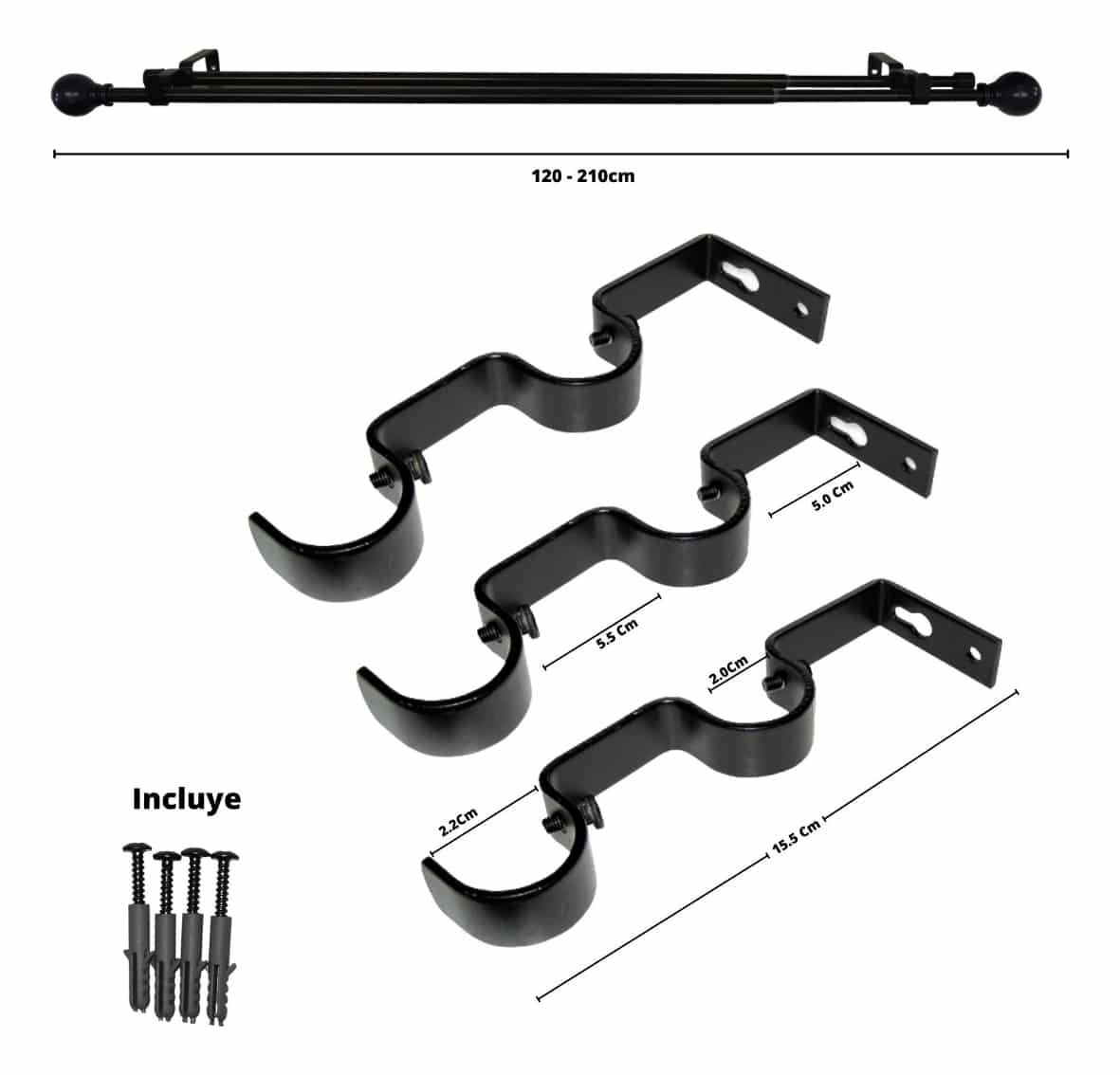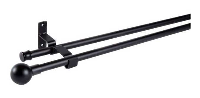Set Barras para Cortina Doble 16/19 Mm Extensible 120-210 Cm A Muro Negro Bola