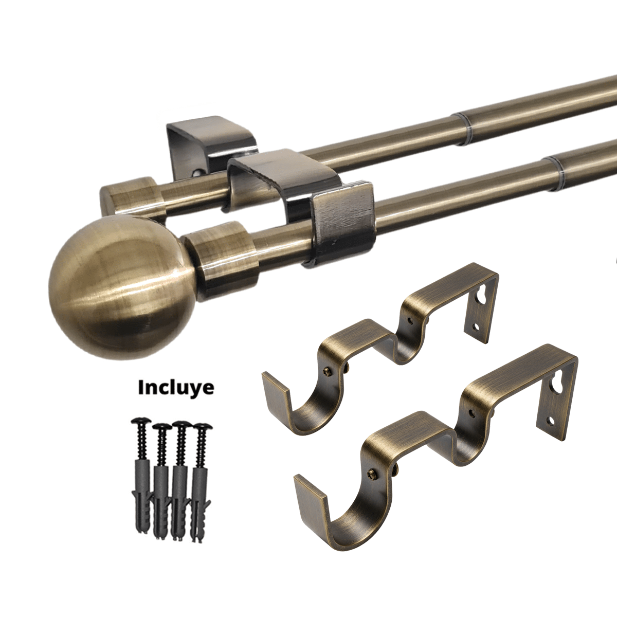 Set Barras para Cortina Doble 16/19 Mm Extensible 170-320 Cm A Muro Bronce Bola