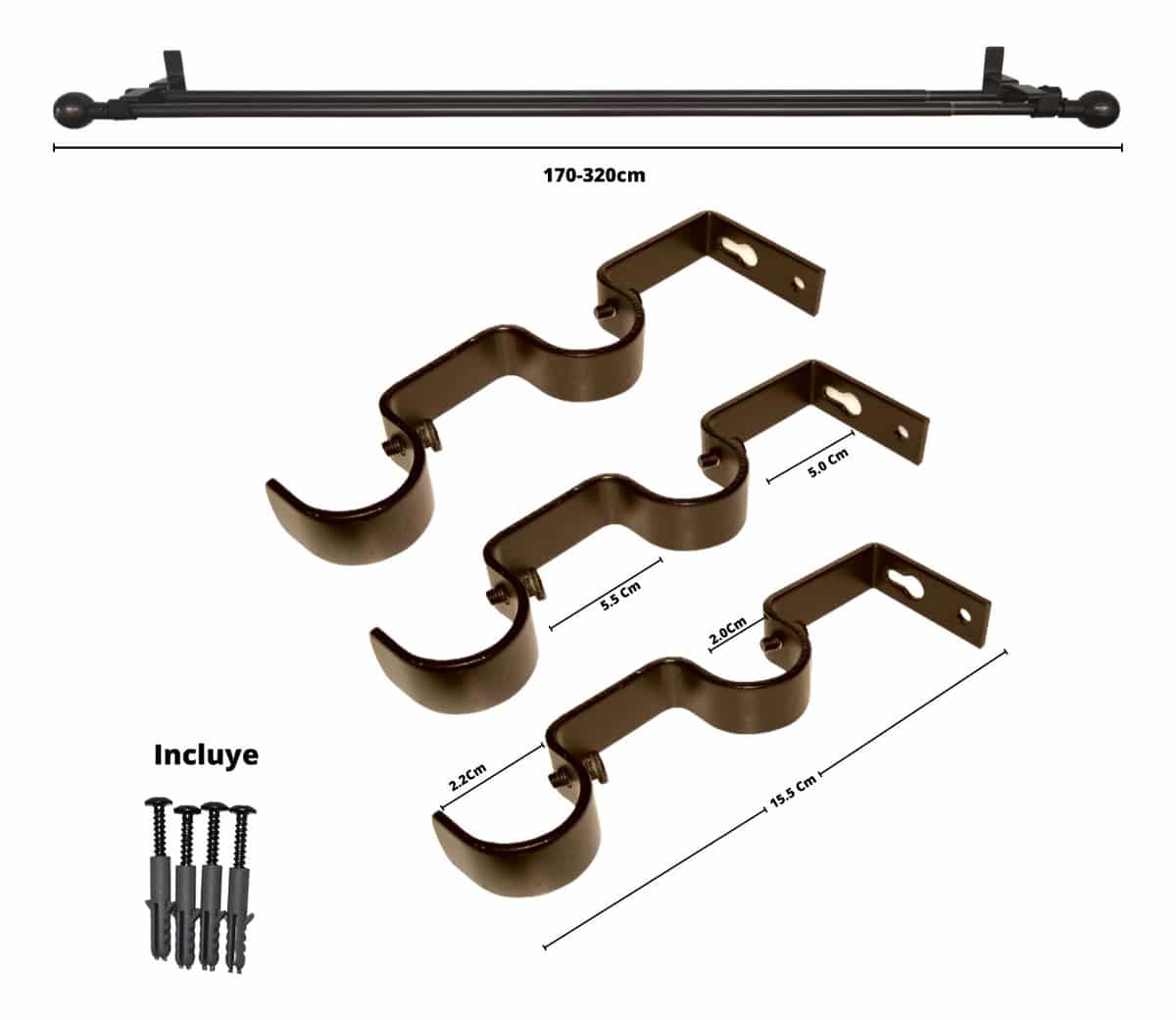 Set Barras para Cortina Doble 16/19 Mm Extensible 170-320 Cm A Muro Café Bola