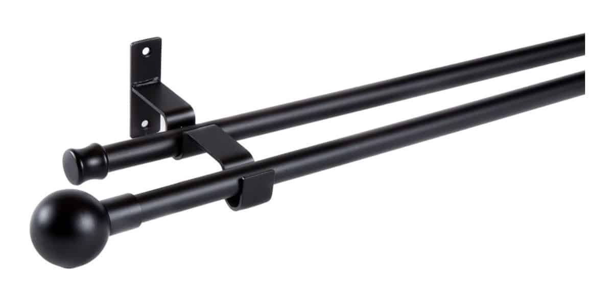 Set Barras para Cortina Doble 16/19 Mm Extensible 170-320 Cm A Muro Negro Bola