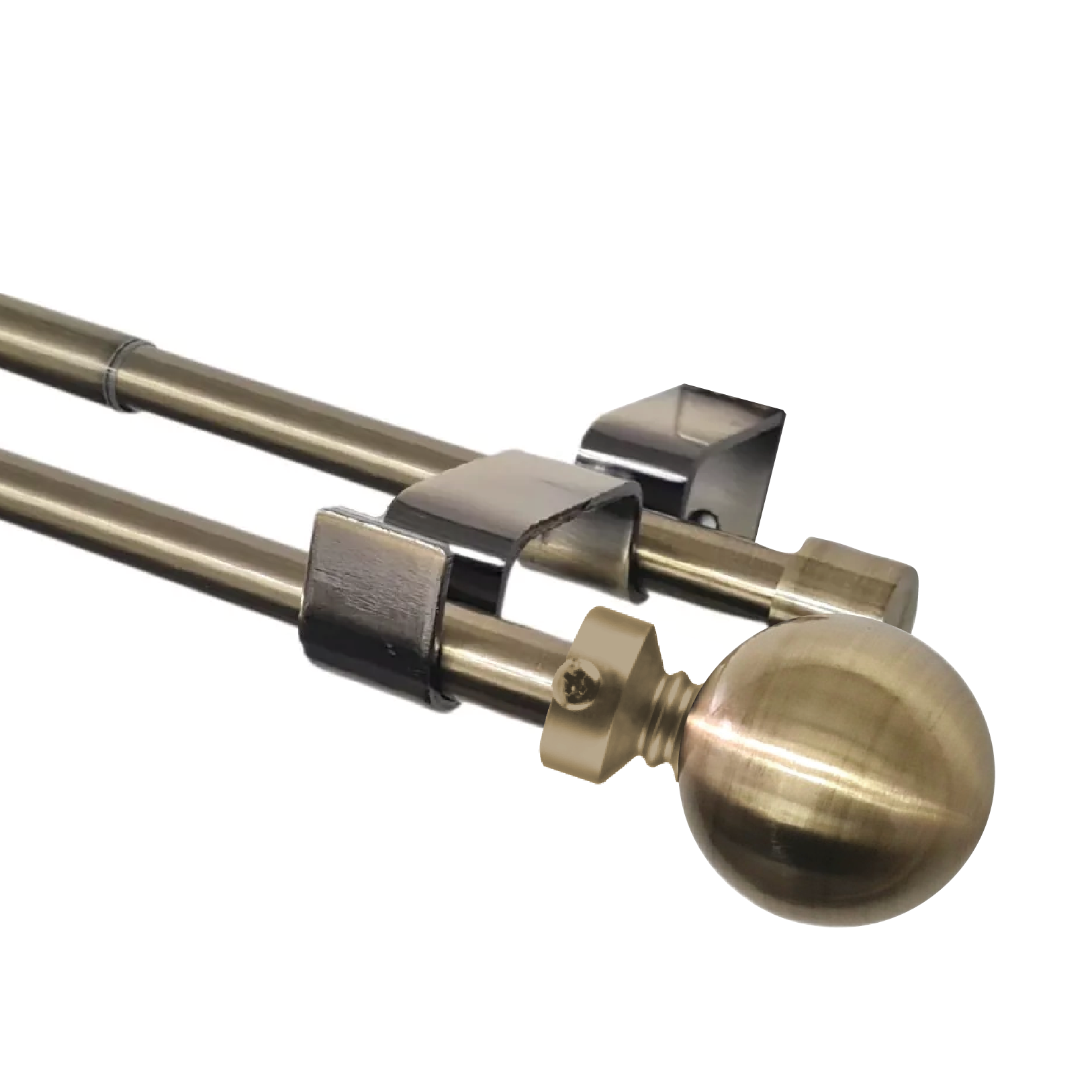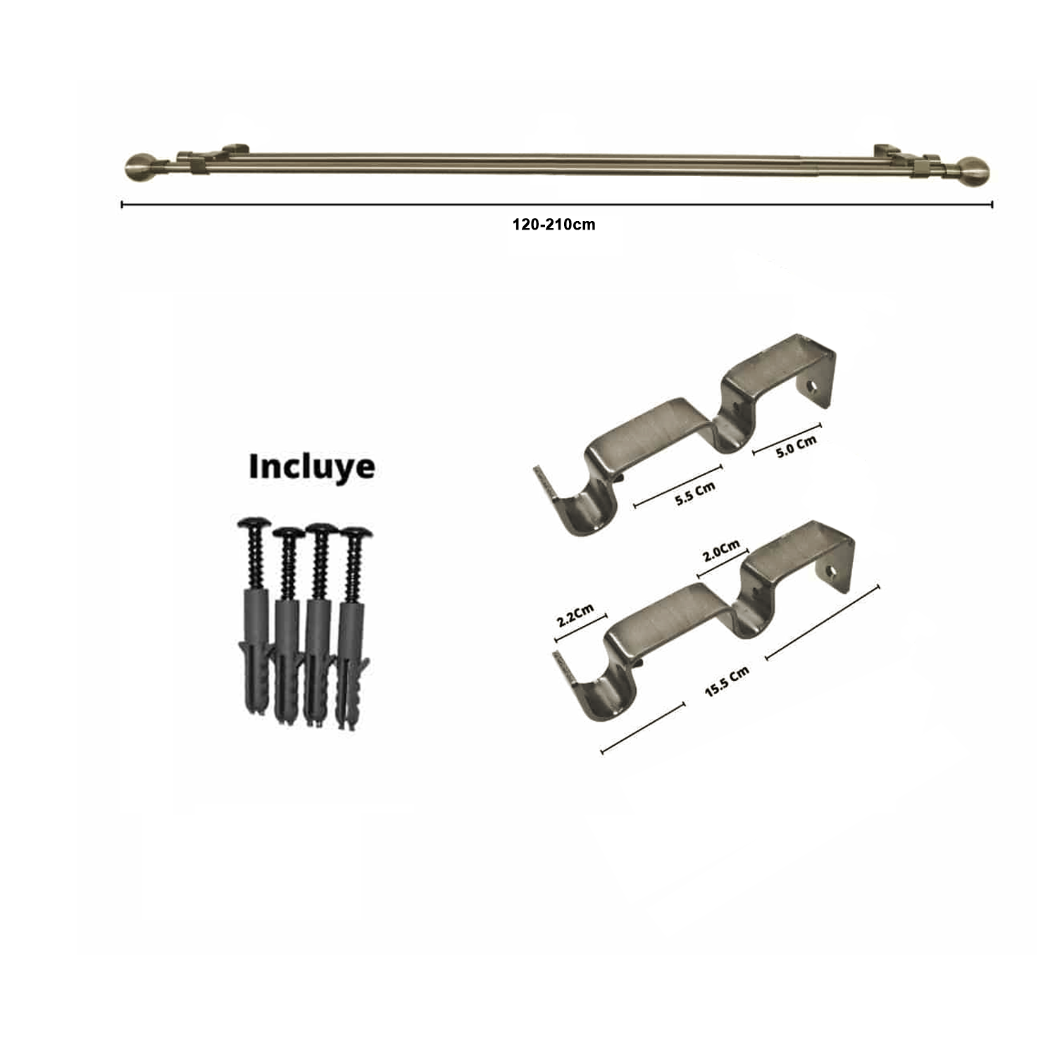 Set Barras para Cortina Doble 16/19 Mm Extensible 120-210 Cm A Muro Bronce Bola