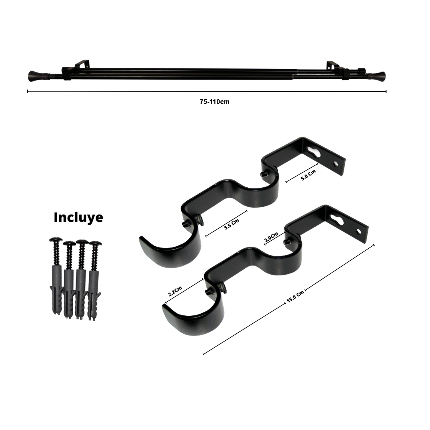 Set Barras para Cortina Doble 16/19 Mm Extensible 75-110 Cm A Muro Negro Cónico
