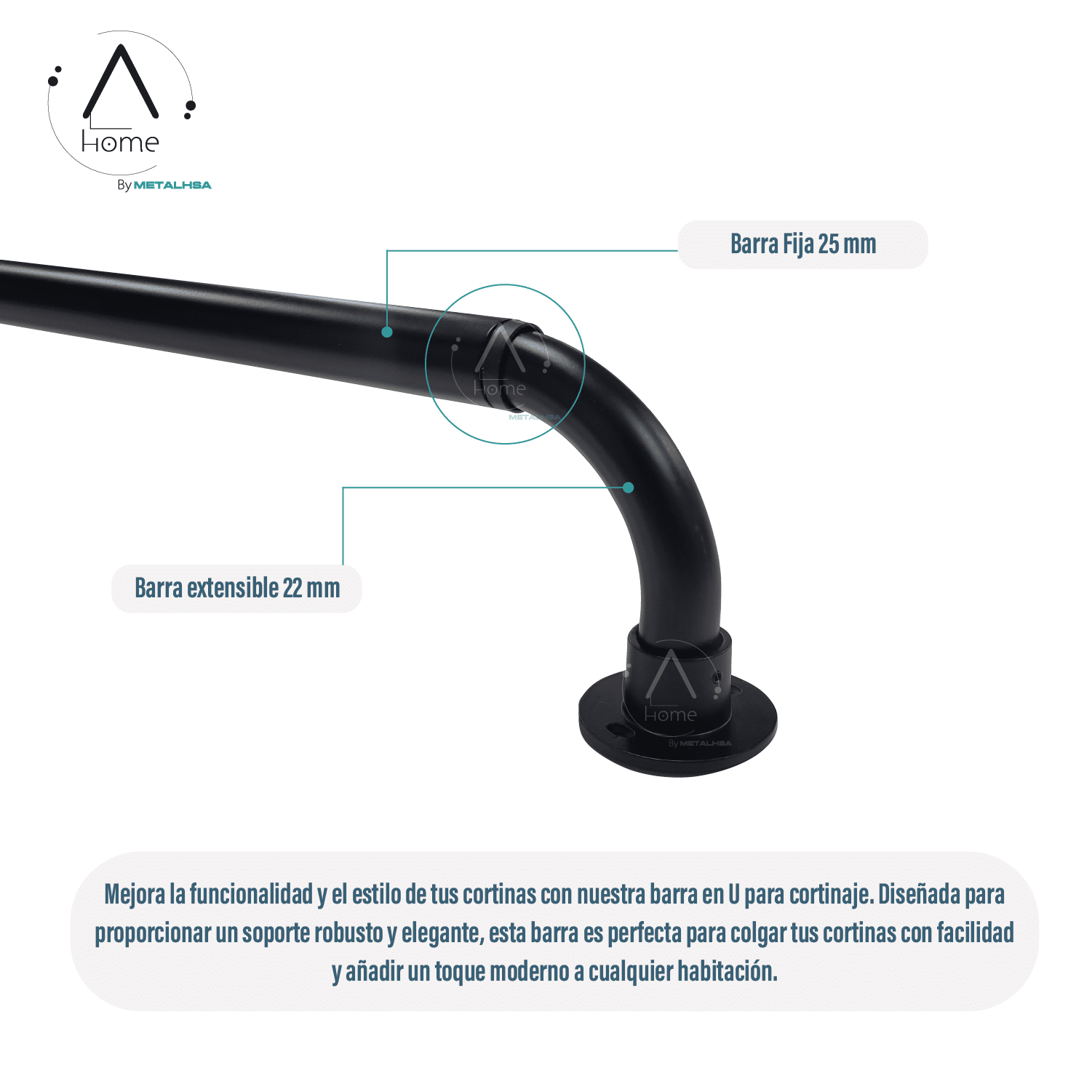 Set Simple en U de 22/25mm, extensible de 120 a 210 cm. Ideal para ventanas medianas, este set proporciona una instalación ajustada y una apariencia elegante sin espacios visibles.