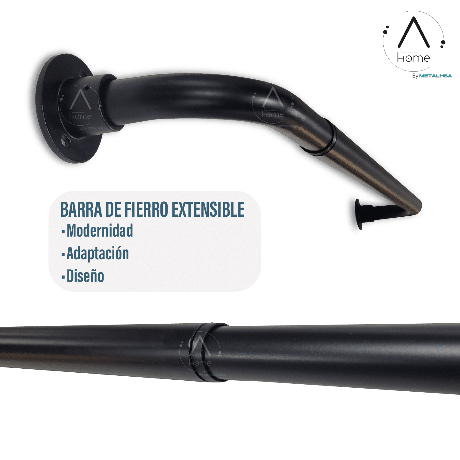 Productos > Set Barra para Cortina Simple 22/25 Mm Extensible Curvo 120 a 210 Cm Color Negro