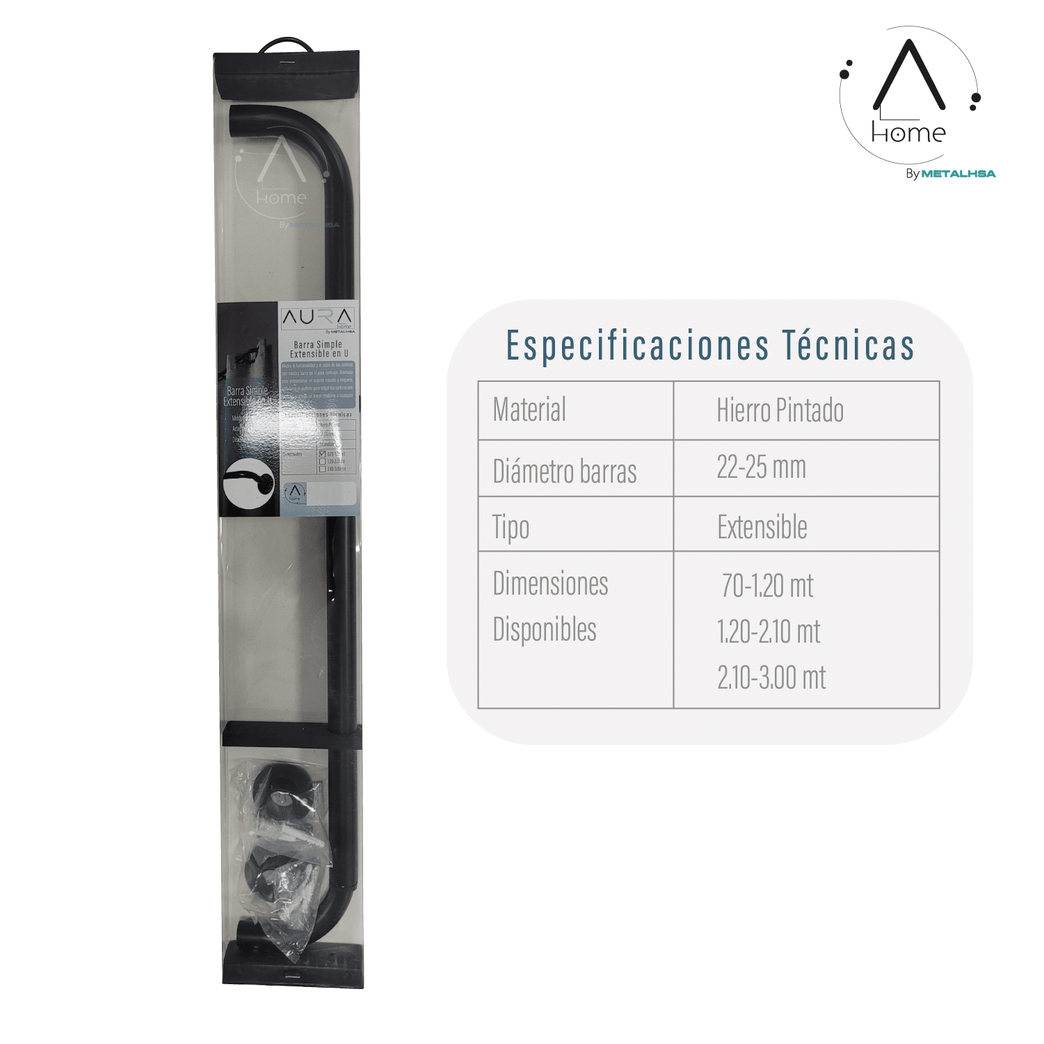 Productos > Set Barra para Cortina Simple 22/25 Mm Extensible Curvo 70 a 120 Cm Color Negro