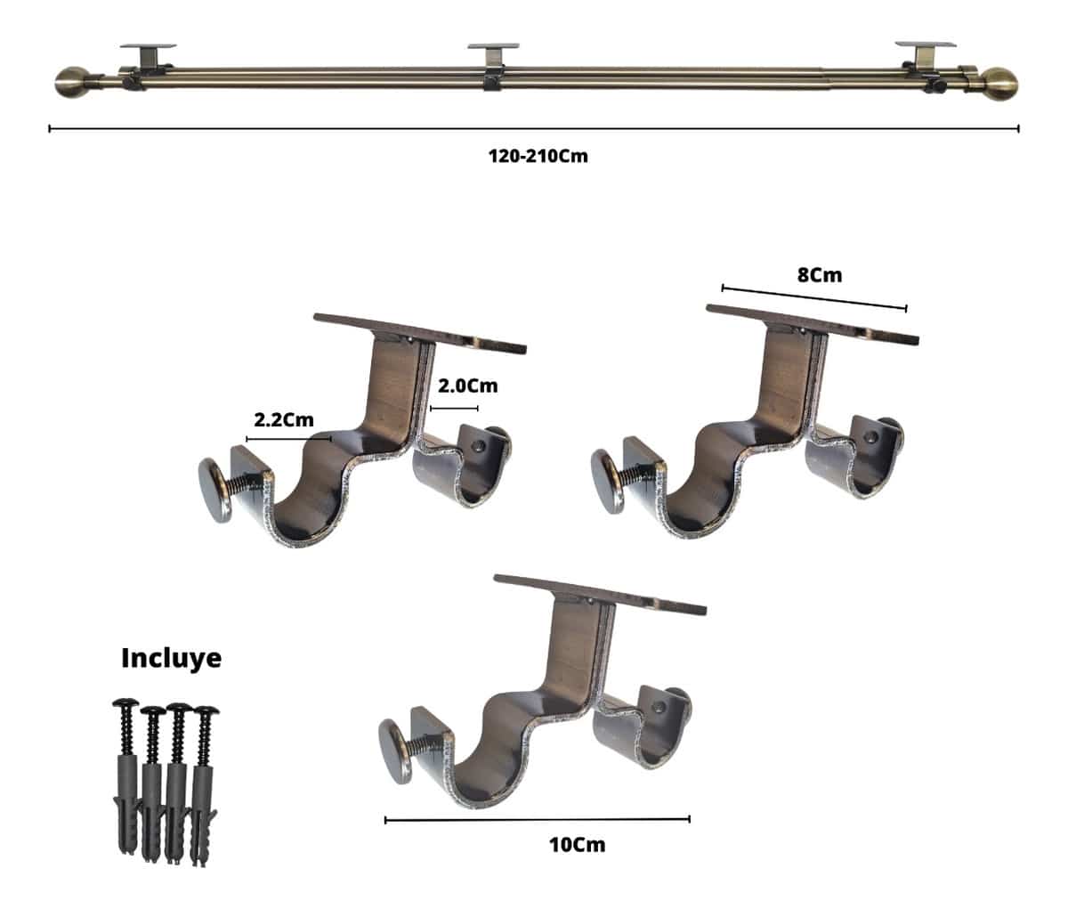 Set Barras para Cortina Doble 16/19 Mm Extensible 120-210 Cm A Techo Bronce Bola